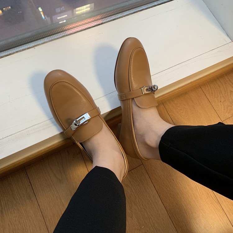공장 도매 부드러운 가죽 신발 여성 로퍼 잠금 사각 발가락 낮은 뱀프 플랫 신발 여성 라운드 발가락 신발