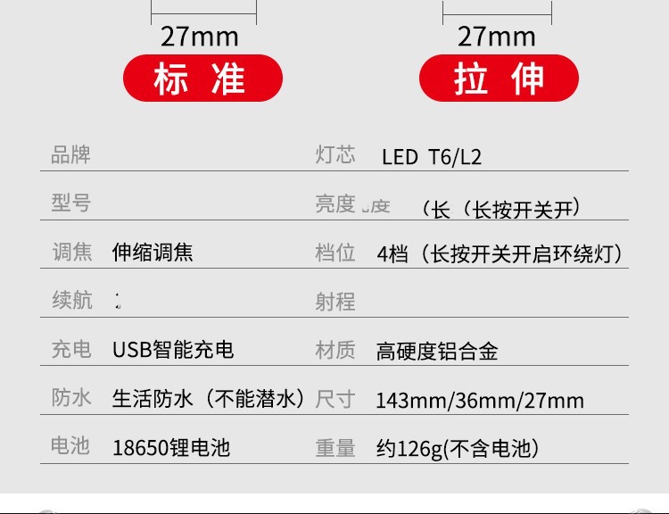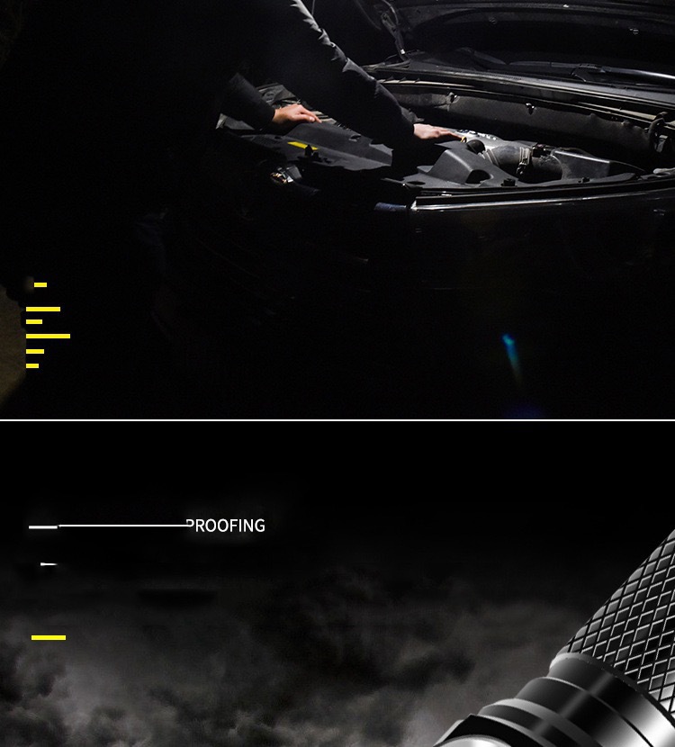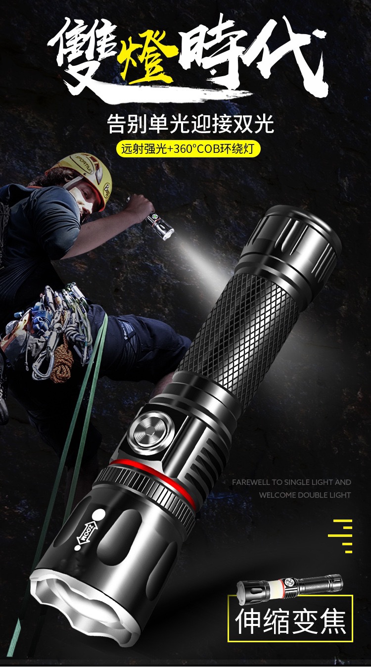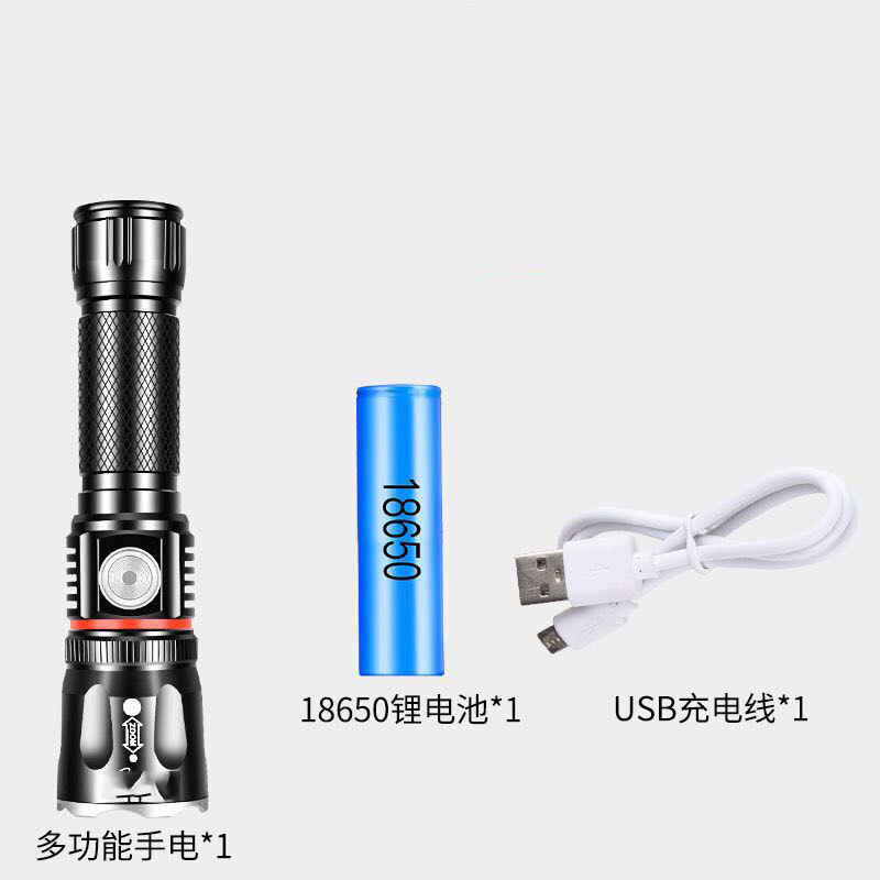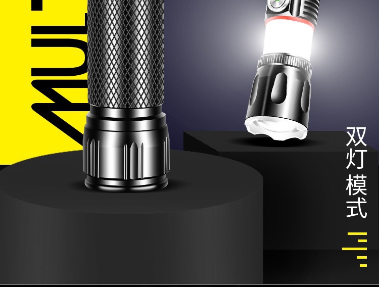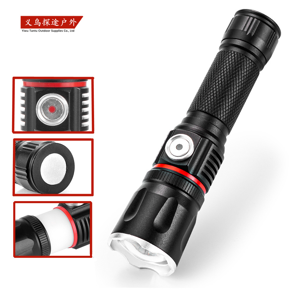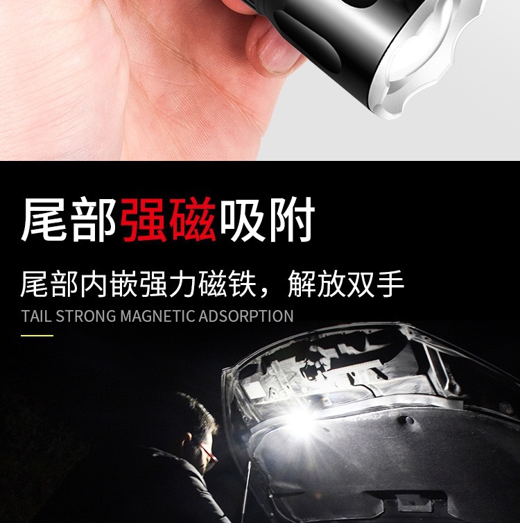 다기능 강한 빛 LED 손전등 USB 충전 텔레스코픽 T6 알루미늄 합금 강한 빛 손전등 자석 작업 등