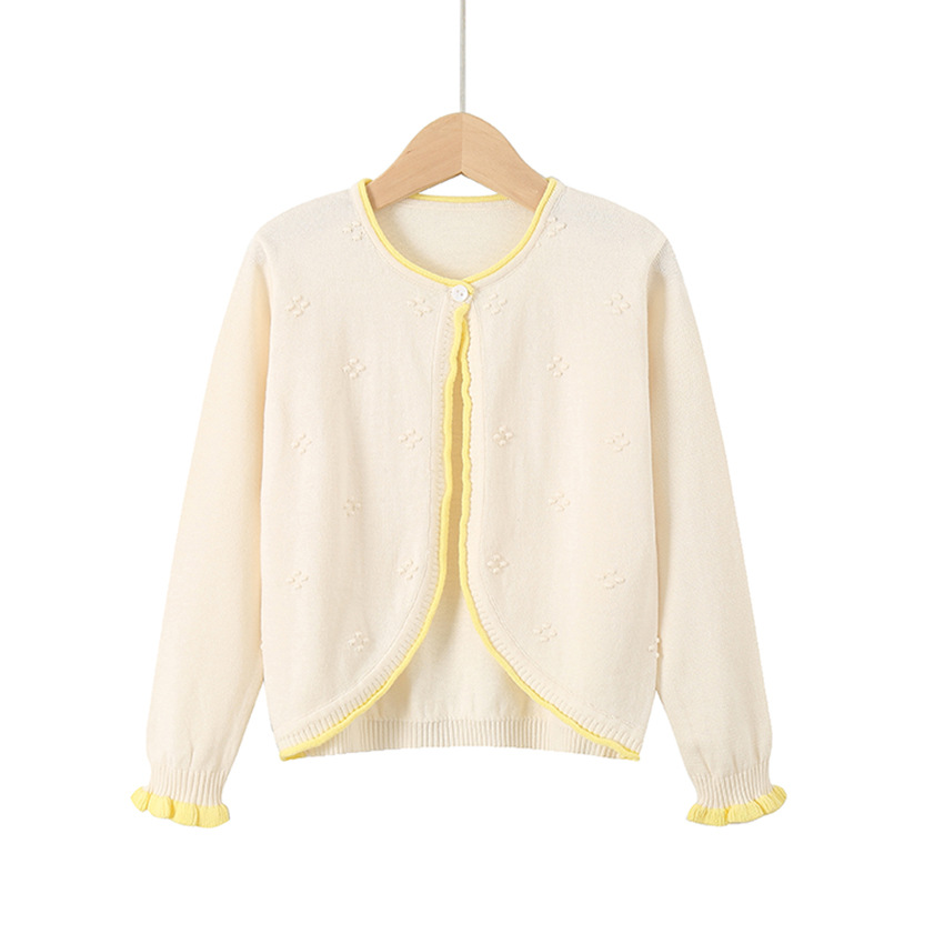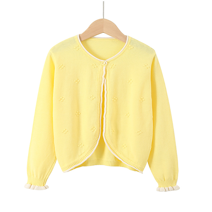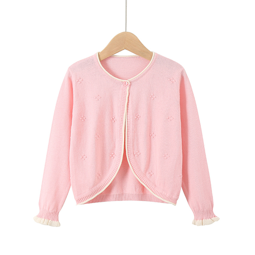 2026년 봄 신상 아동용 니트 가디건, 배색 여아 원버튼 숄 코트스토어 가기