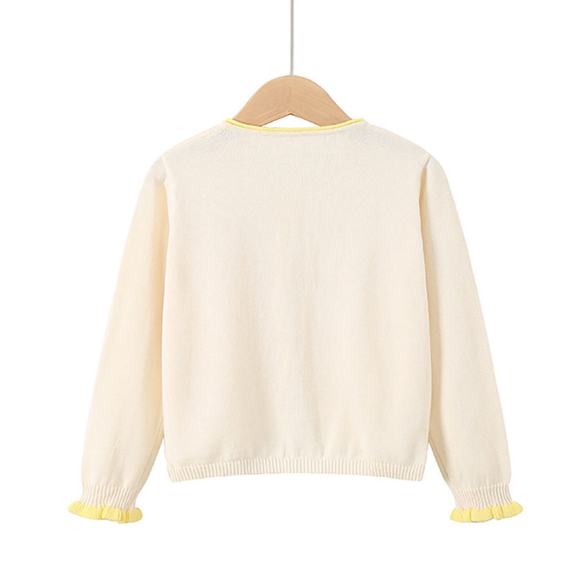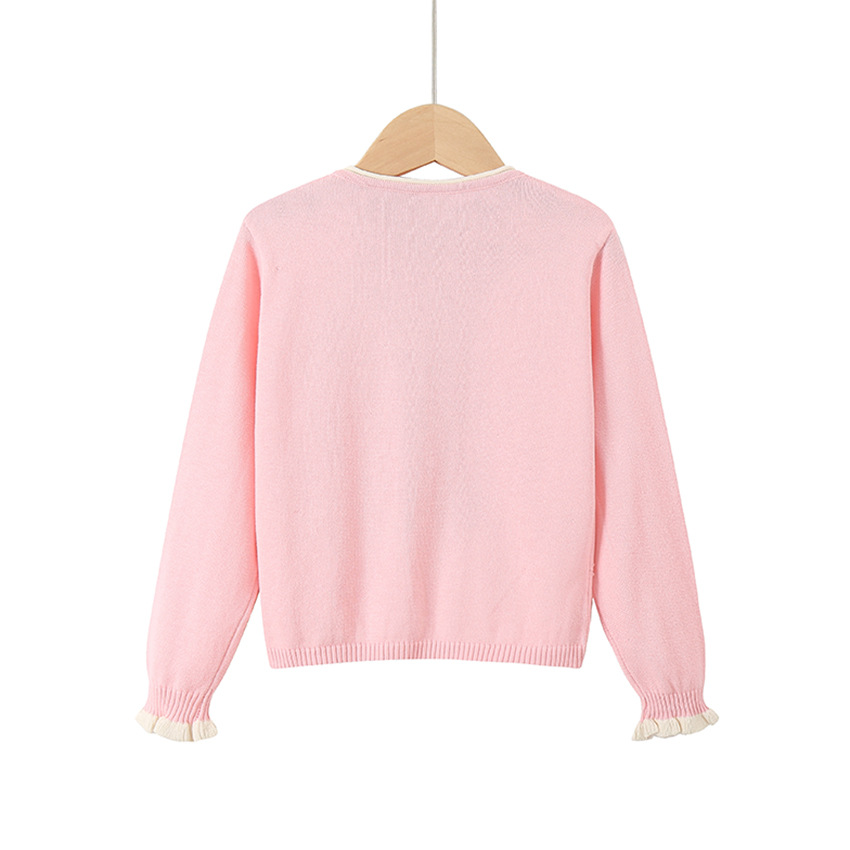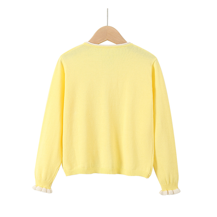 2026년 봄 신상 아동용 니트 가디건, 배색 여아 원버튼 숄 코트