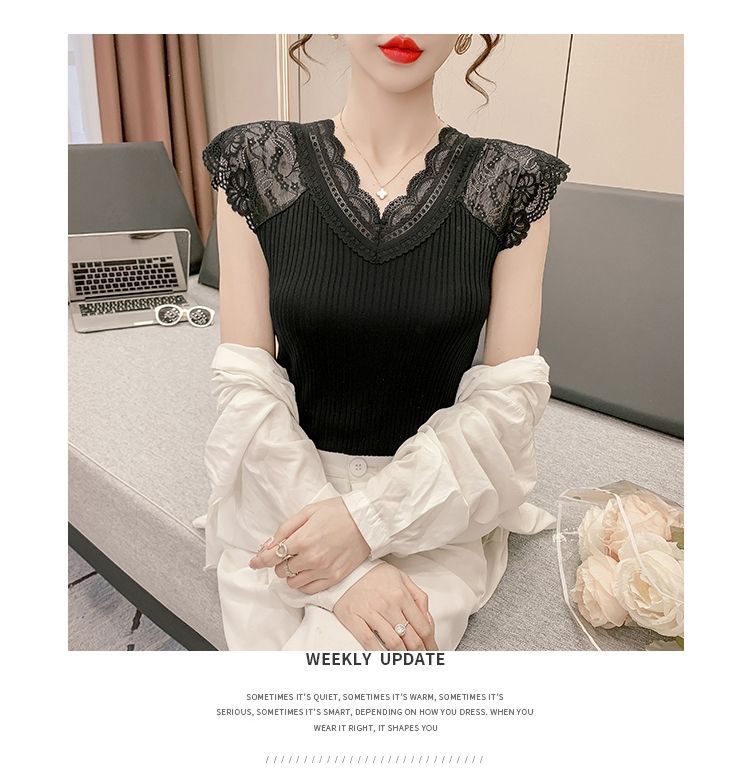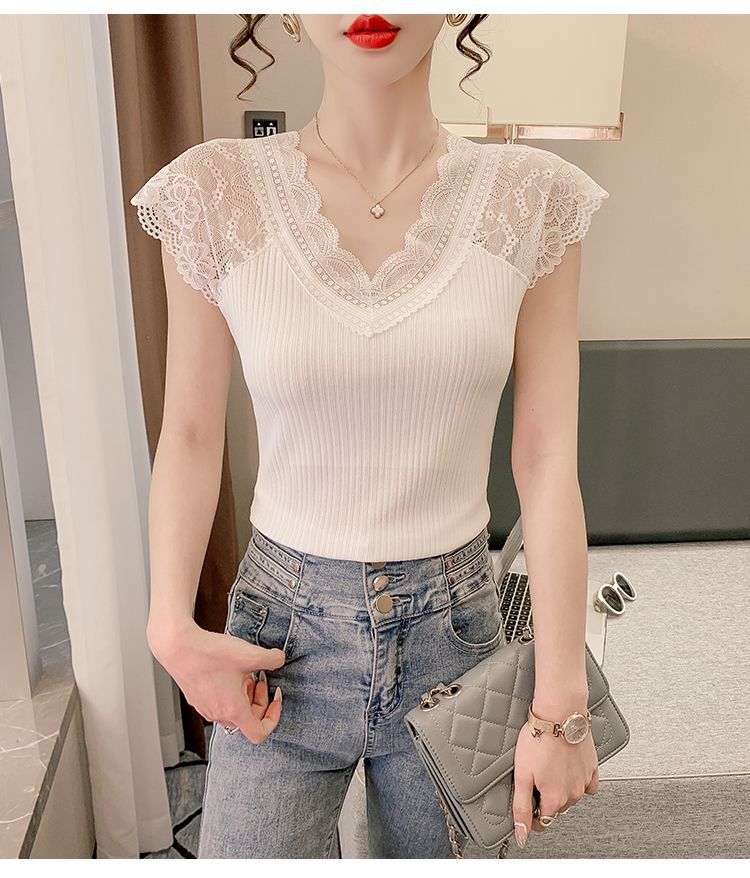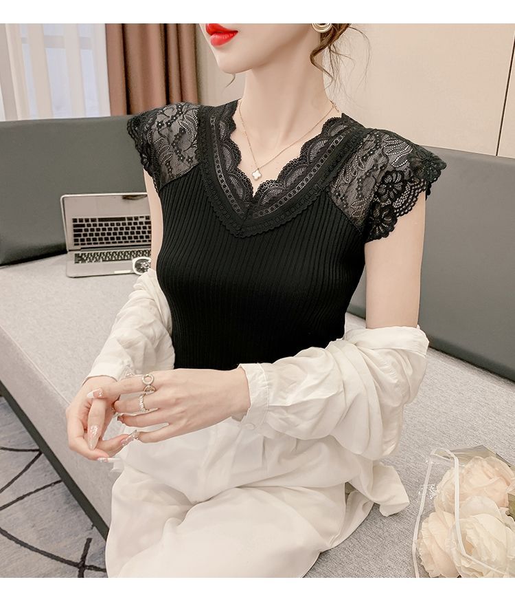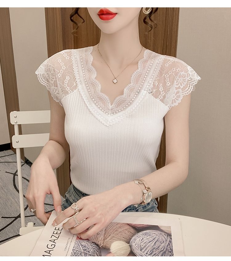 화이트 레이스 이너 캐미솔 여성용 베이스 레이어 셔츠 신상 슈트 베이스 레이어 셔츠 브이넥 탑 티셔츠