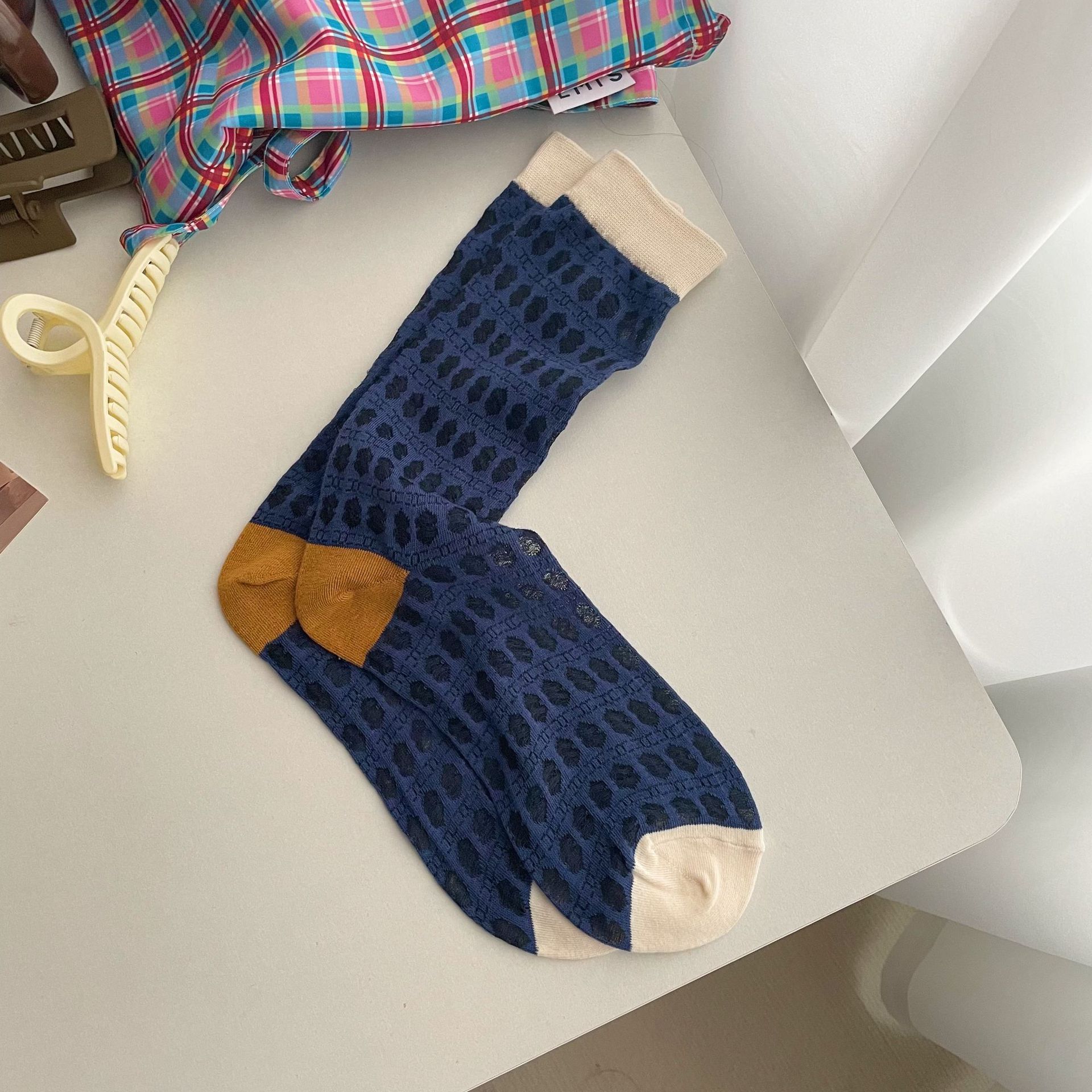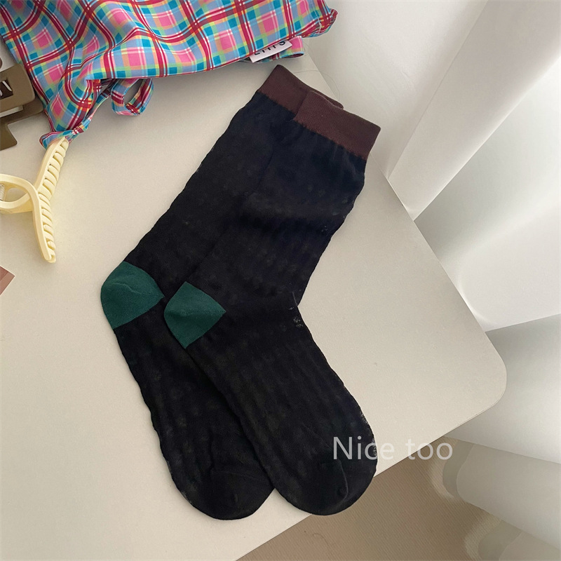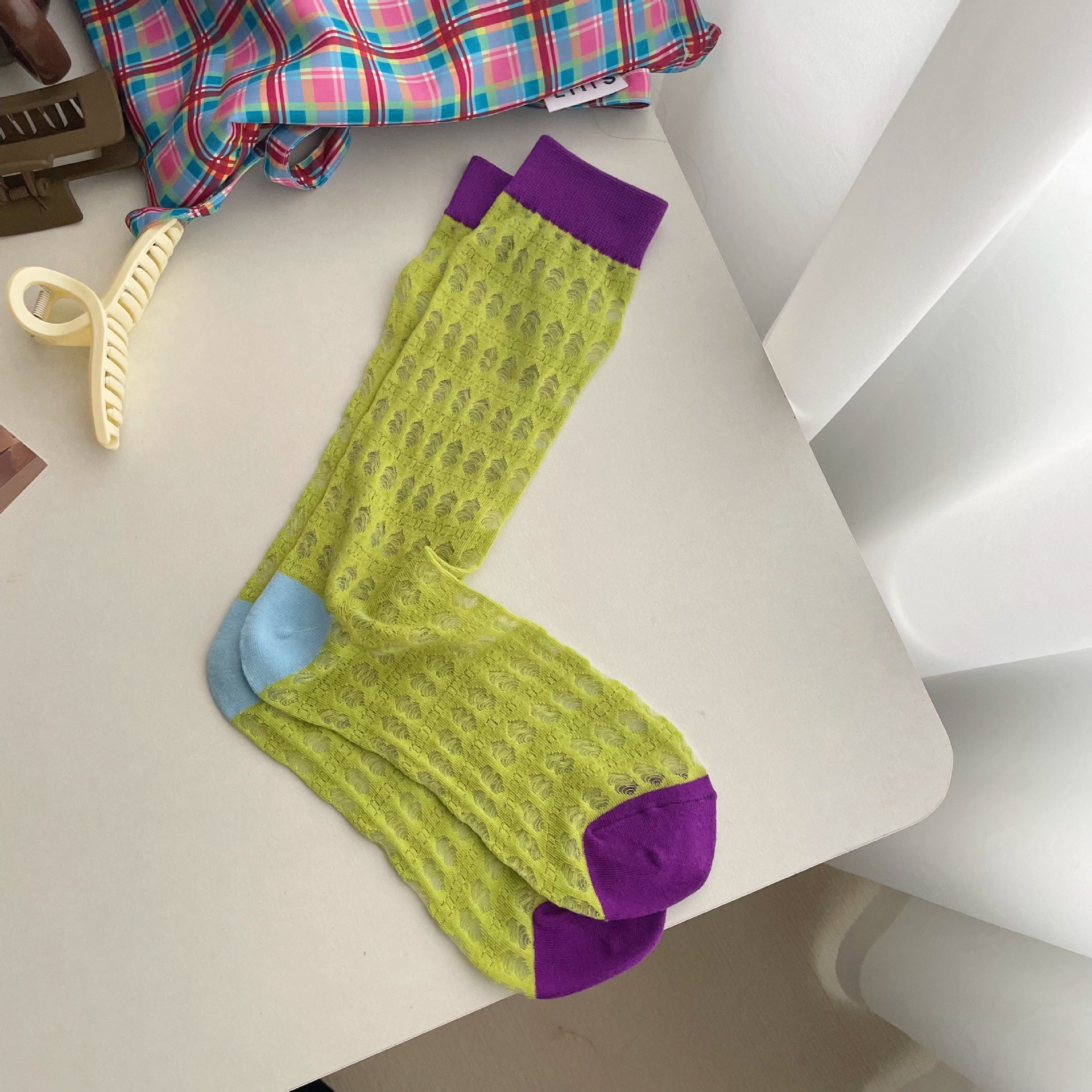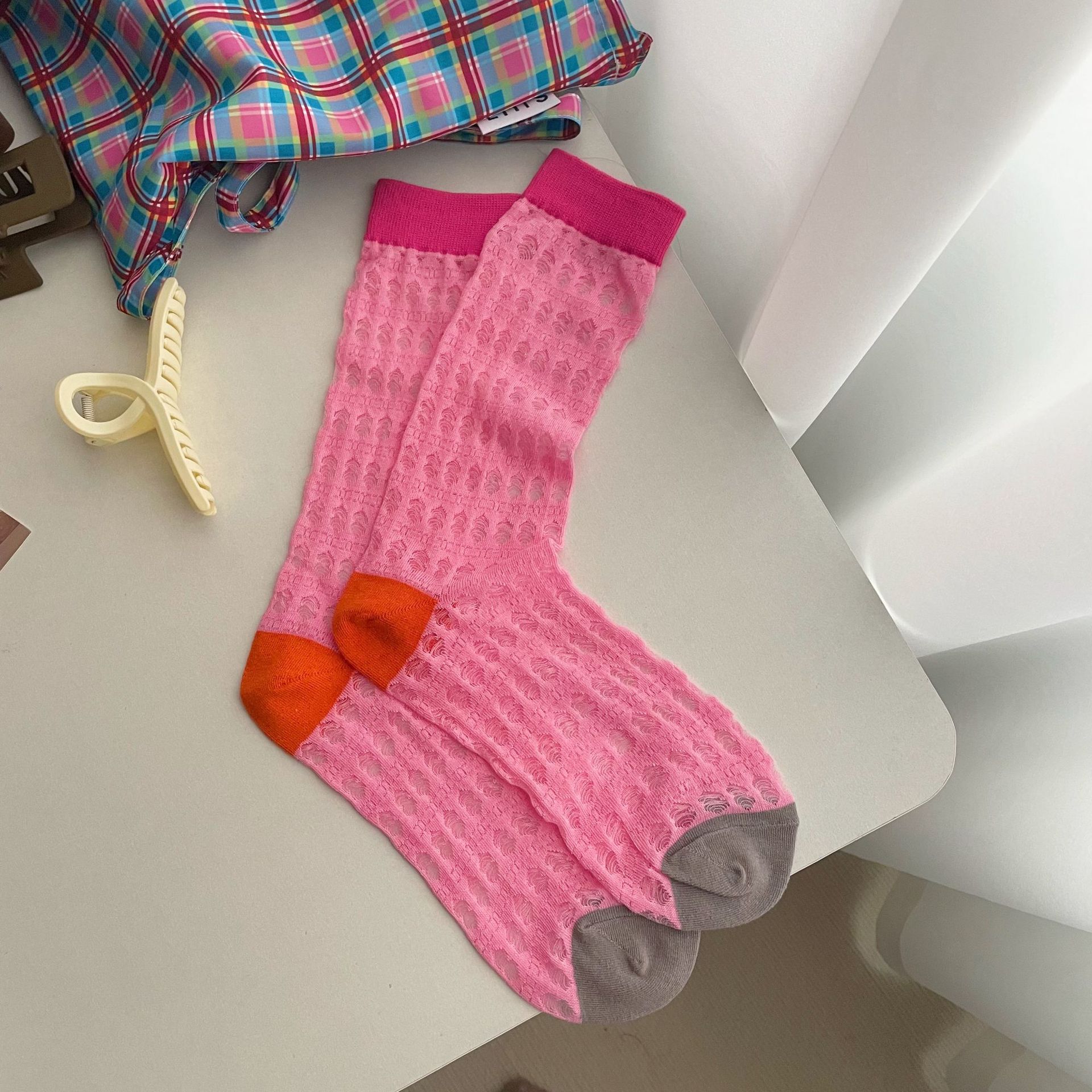 여름 얇은 유리 실크 스타킹 어린이 중간 배럴 유행 중공 도트 사이버 레드 스타일 크리스탈 양말 핑크 양말 유행