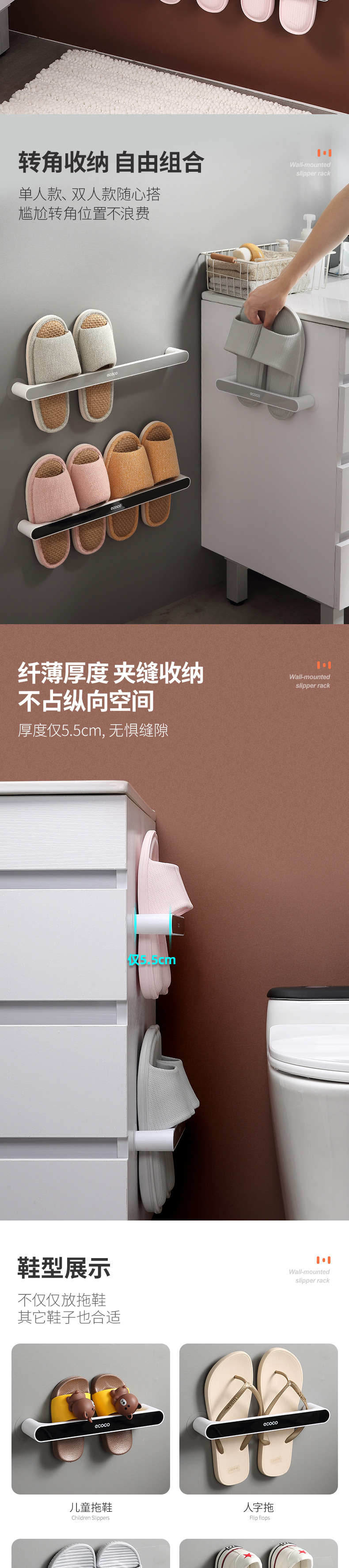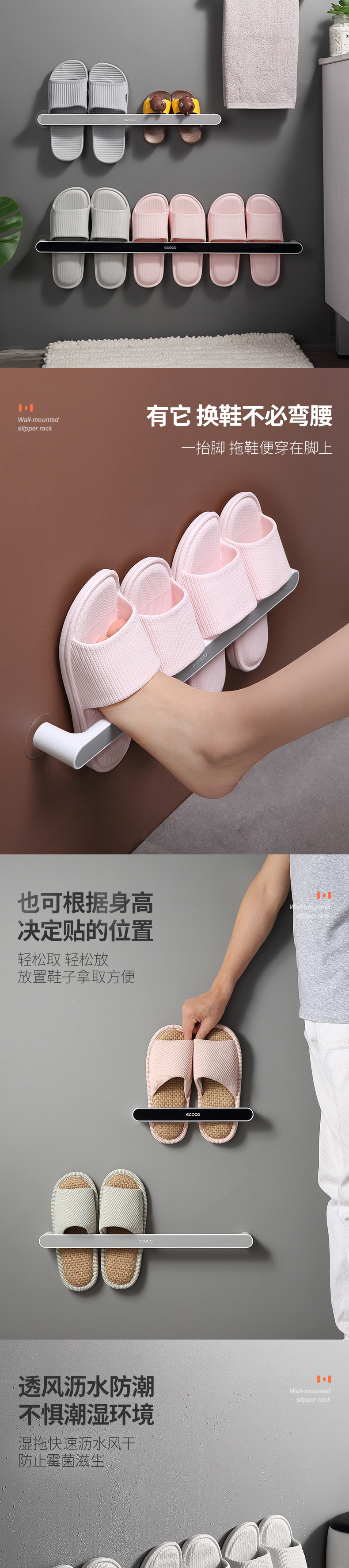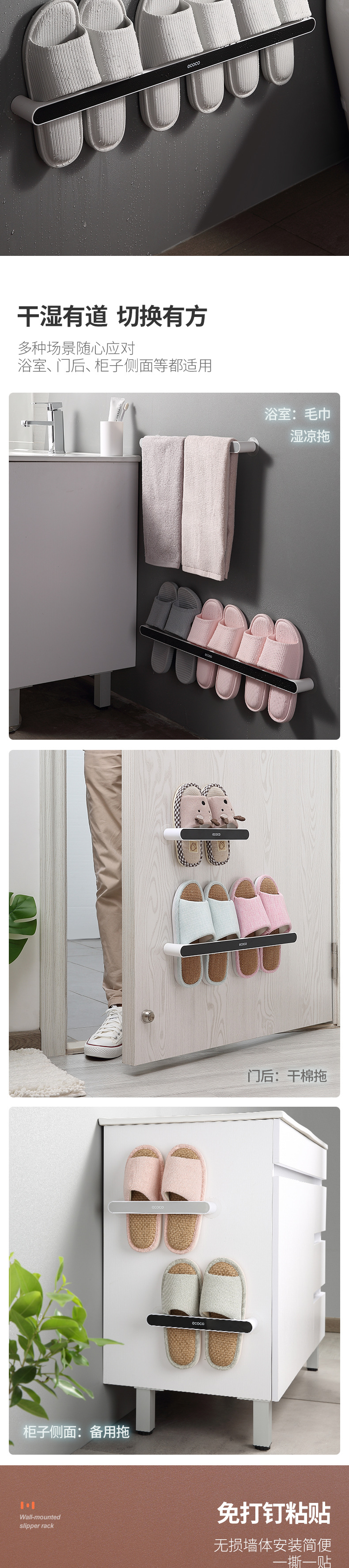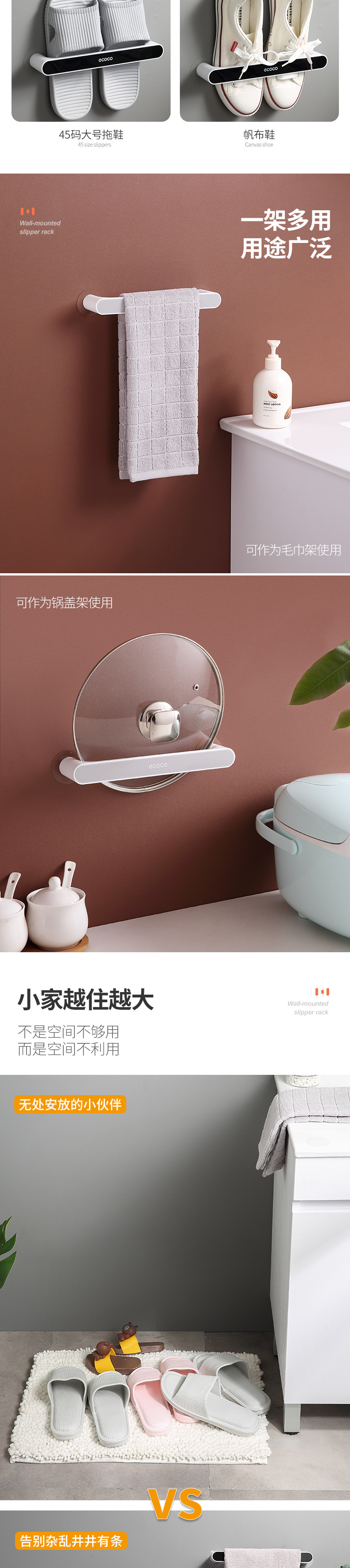 욕실 펀치 프리 슬랫 랙 화장실 보관 랙 신발 보관 아티팩트 벽 장착 수건 랙