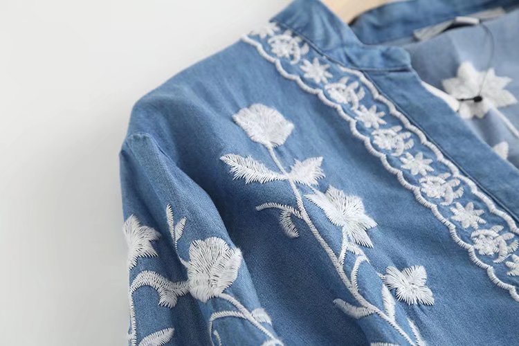 유럽 및 미국 여성 의류 가을 겨울 신상품 해외 무역 도매 레트로 긴팔 꽃 자수 데님 스타일 여성 셔츠스토어 가기