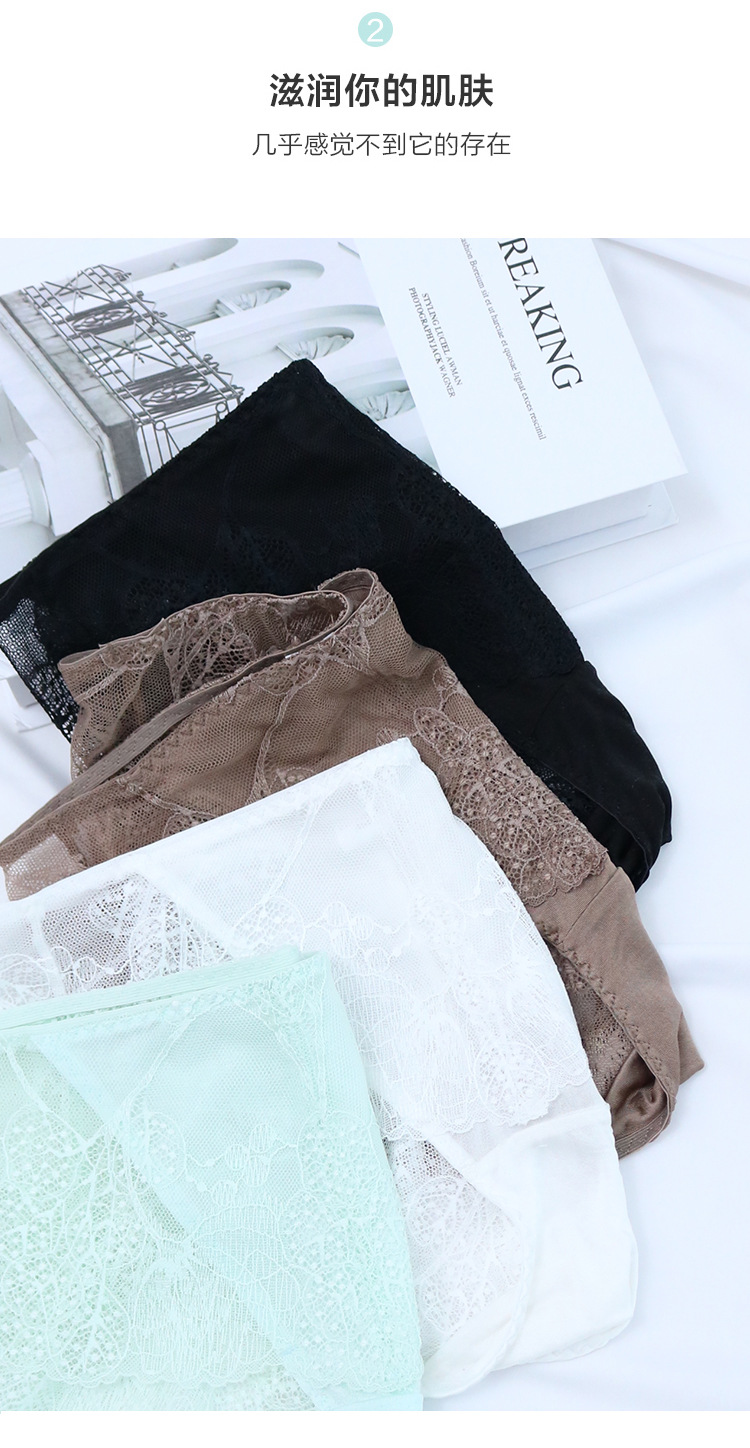 탕거 실크 미드웨이스트 초박형 섹시 팬티, 뽕나무 실크 레이스 힙 커버 삼각 팬티, 통기성 좋고 편안함