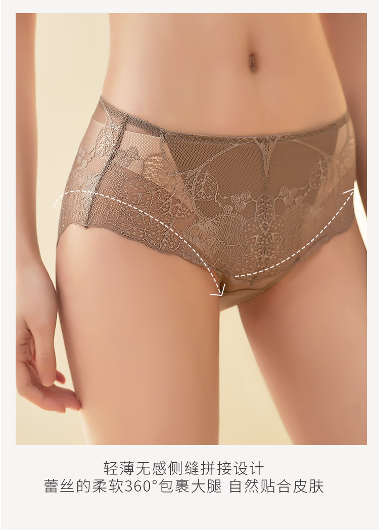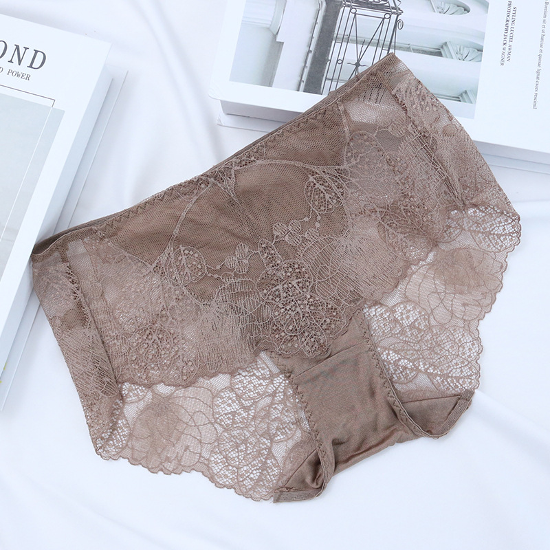 탕거 실크 미드웨이스트 초박형 섹시 팬티, 뽕나무 실크 레이스 힙 커버 삼각 팬티, 통기성 좋고 편안함스토어 가기