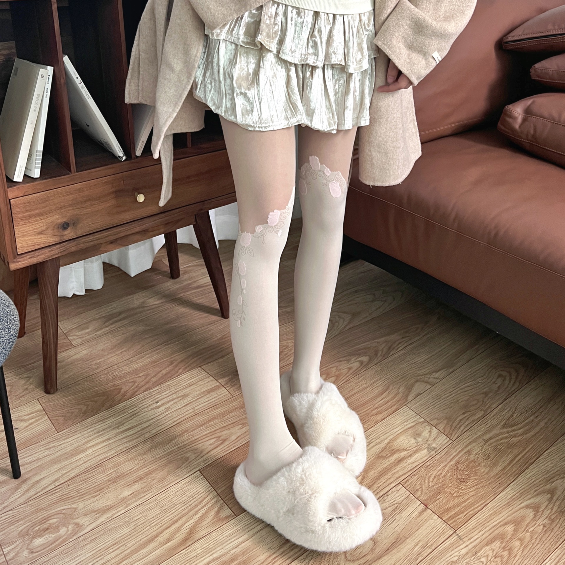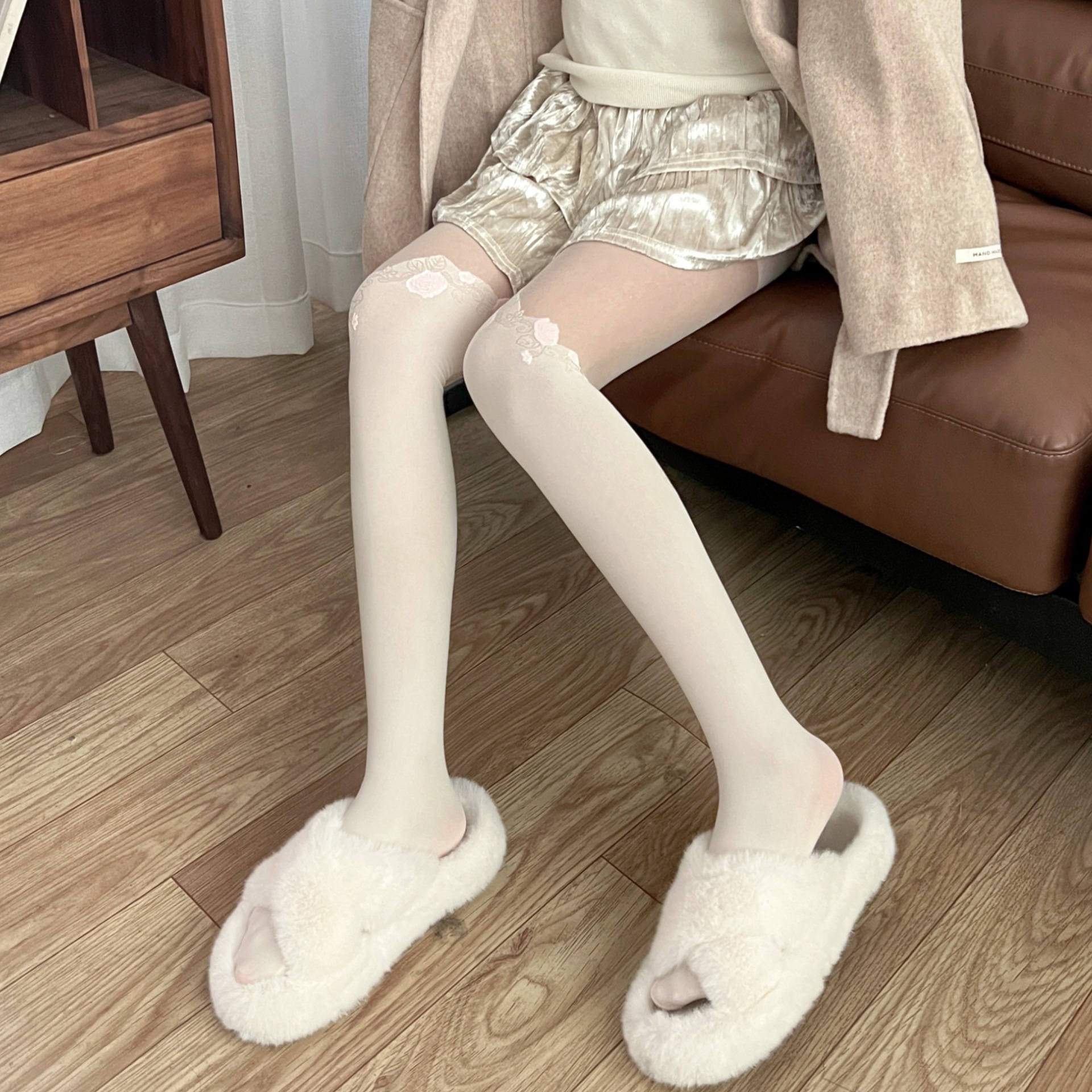 순수한 욕망 발레 소녀 화이트 실크 스테레오 로즈 가짜 높은 튜브 레이스 자카드 스타킹 뜨거운 소녀 슬리밍 무릎 팬티 스타킹스토어 가기