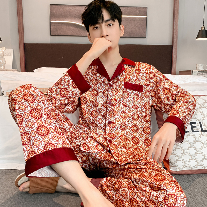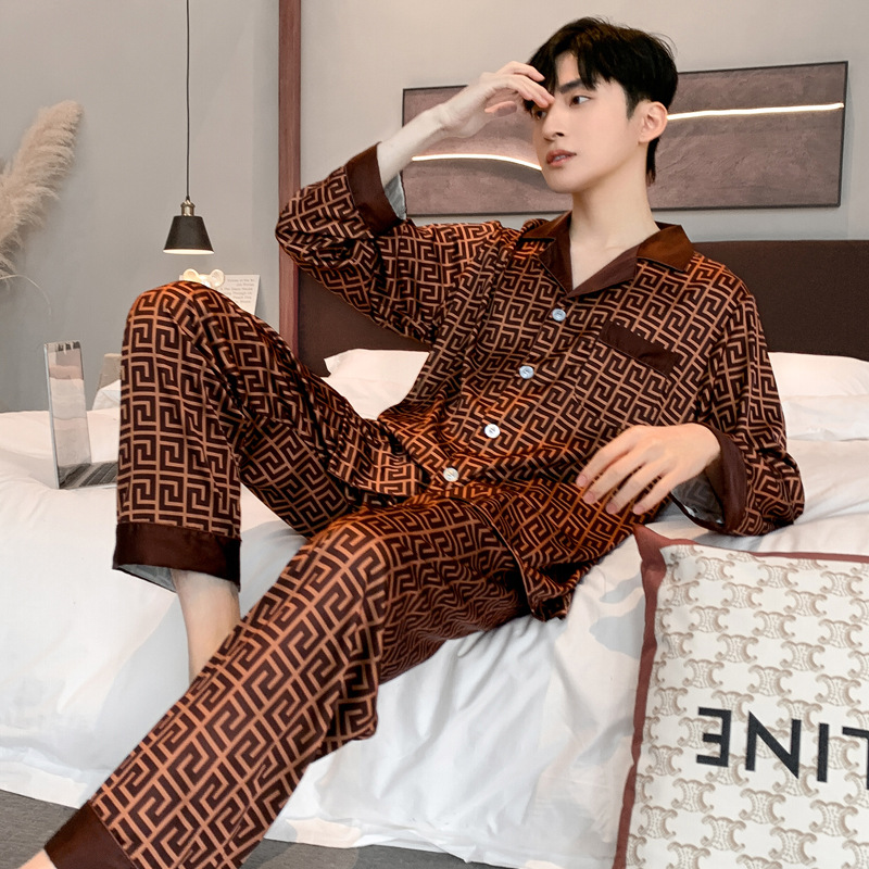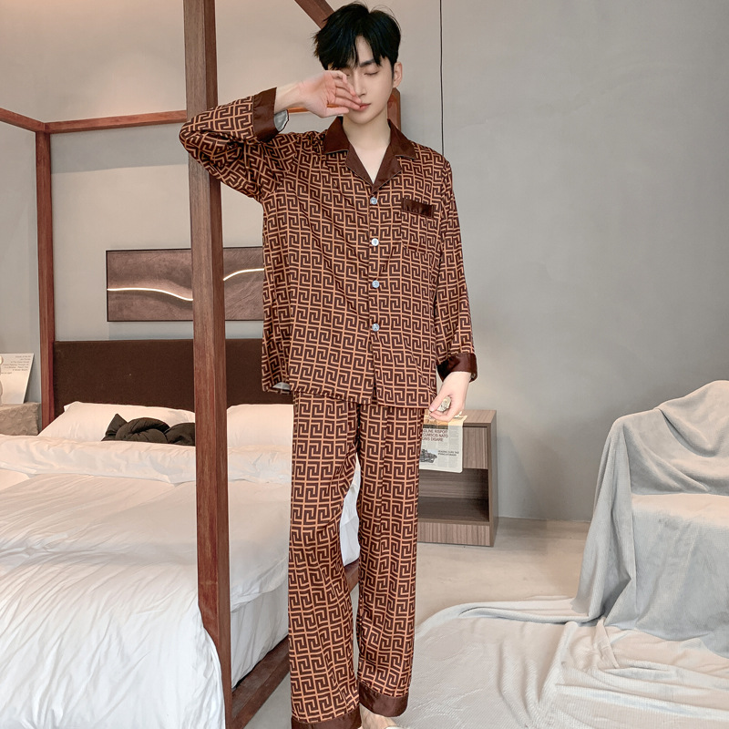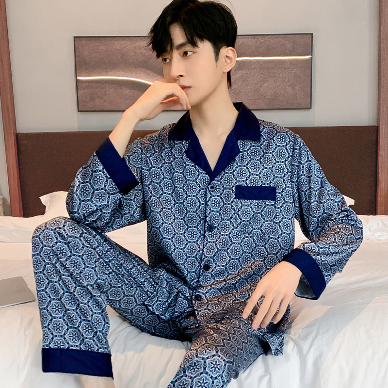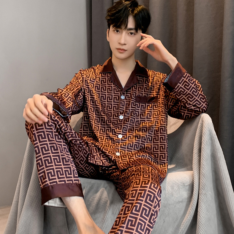 실키 얇은 얼음 실크 잠옷 남자의 봄과 가을 여름 고급 실크 같은 사계절 긴팔 가정복 세트