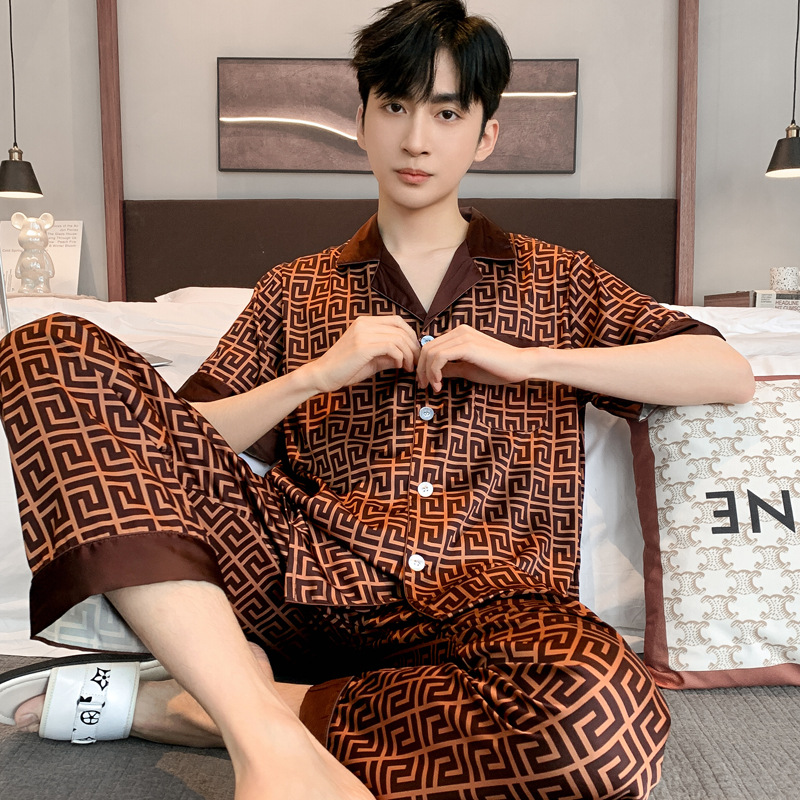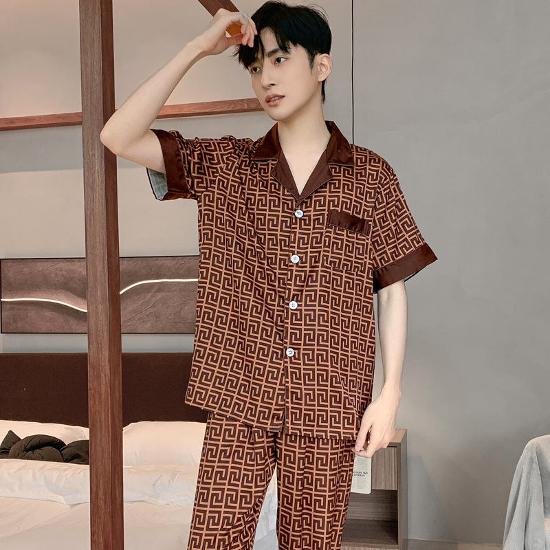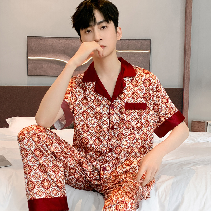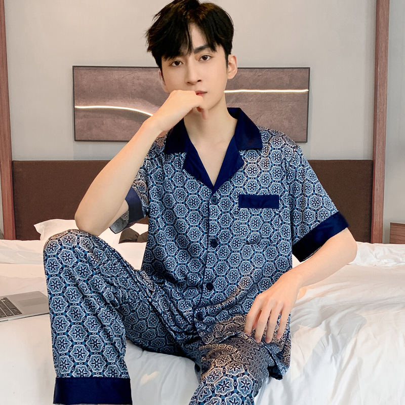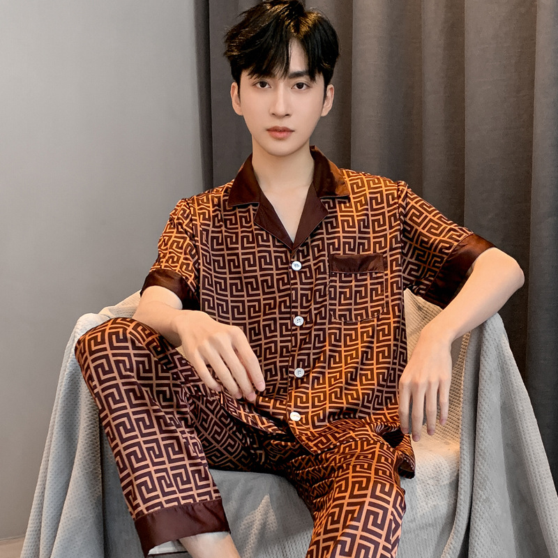 실키 얇은 얼음 실크 잠옷 남자의 봄과 가을 여름 고급 실크 같은 사계절 긴팔 가정복 세트