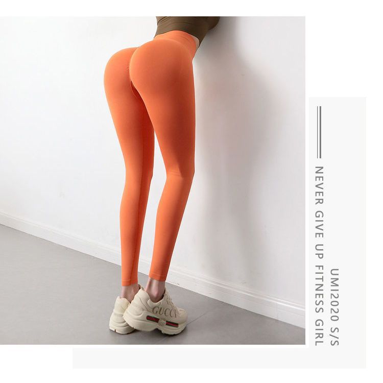 유럽과 미국 스타일의 이음매 없는 피트니스 팬츠, 무봉제 누드 느낌의 타이트한 하이웨이스트 힙업 요가 팬츠, 여름 러닝 스포츠 팬츠