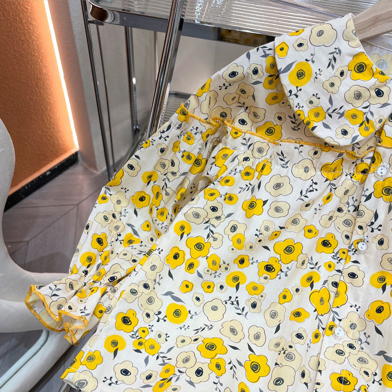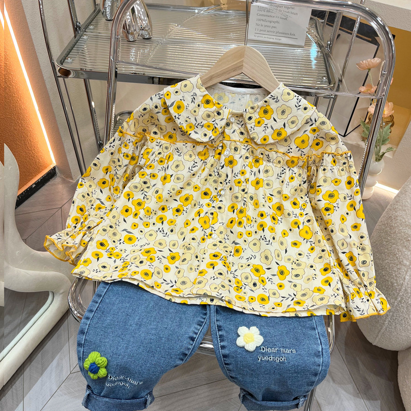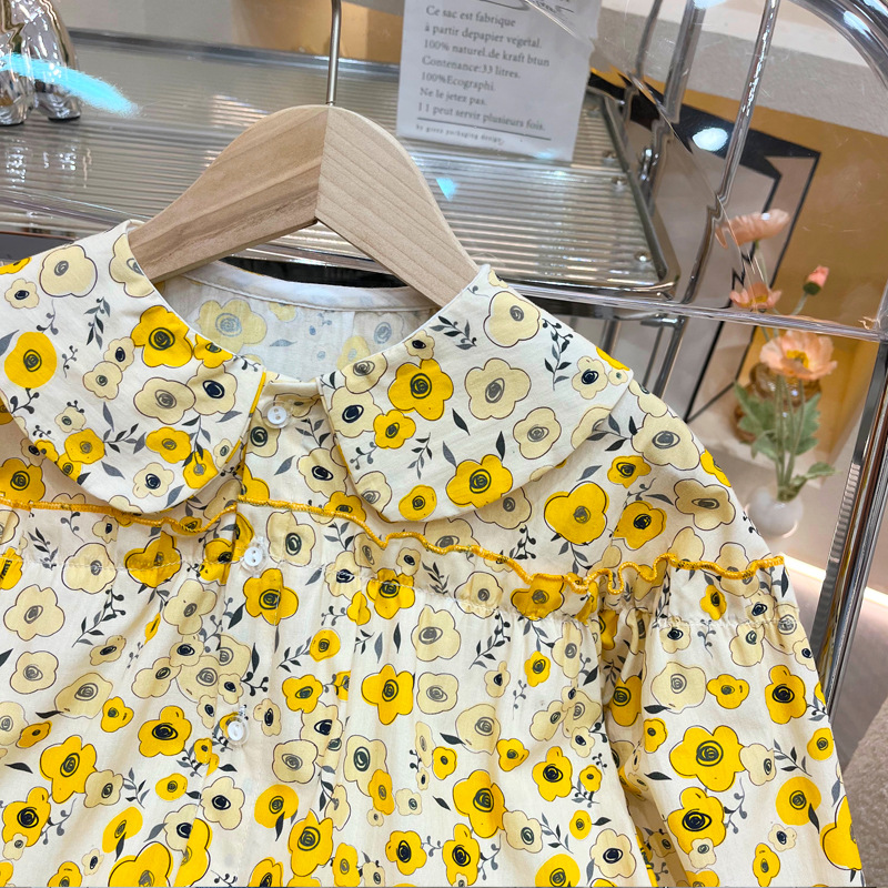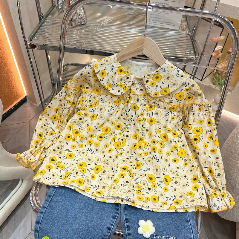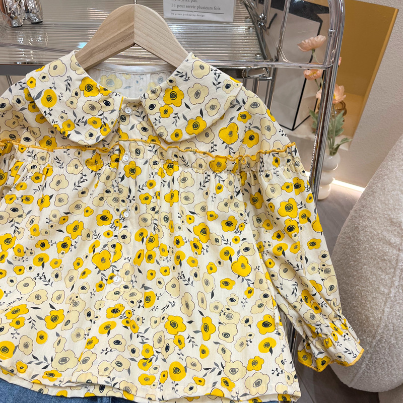 여아 셔츠 아기 긴팔 2025 봄 어린이 꽃무늬 셔츠 여아 상의 노란색 공주 셔츠 유아용스토어 가기