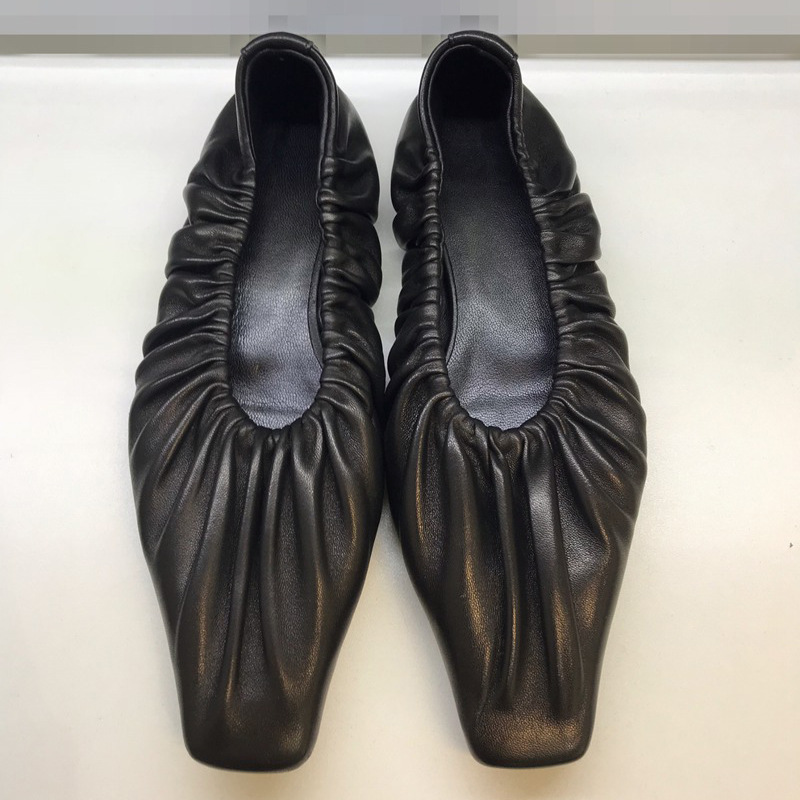 플리츠 스퀘어 토 할머니 신발 여성용 2022 새로운 한국 스타일 여름 플랫 얕은 부드러운 가죽 슬립온 틈새 페달 신발스토어 가기