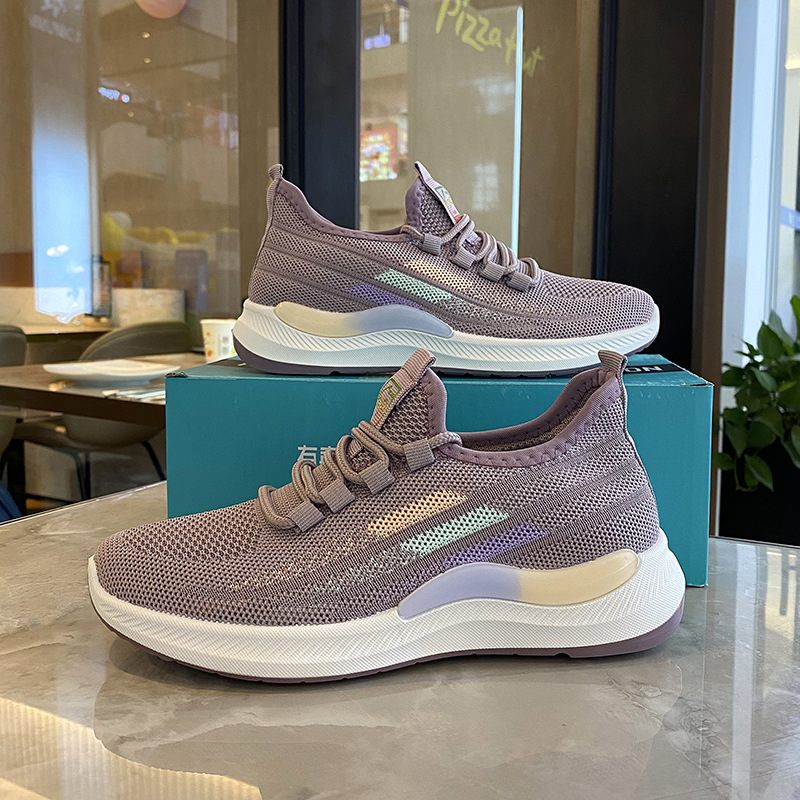 운동화 여성의 가벼운 운동화 새로운 통기성 플라이 짠 미끄럼 방지 부드러운 바닥 숙녀 조커 흰색 신발스토어 가기