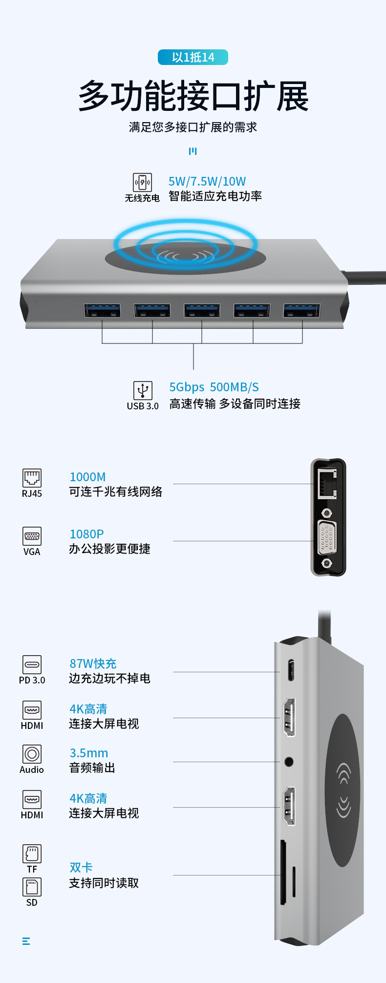국경 간 핫 세일 유형 c hun 도킹 스테이션 usb 허브 다기능 허브 듀얼 HDMI 기가비트 도킹 스테이션스토어 가기