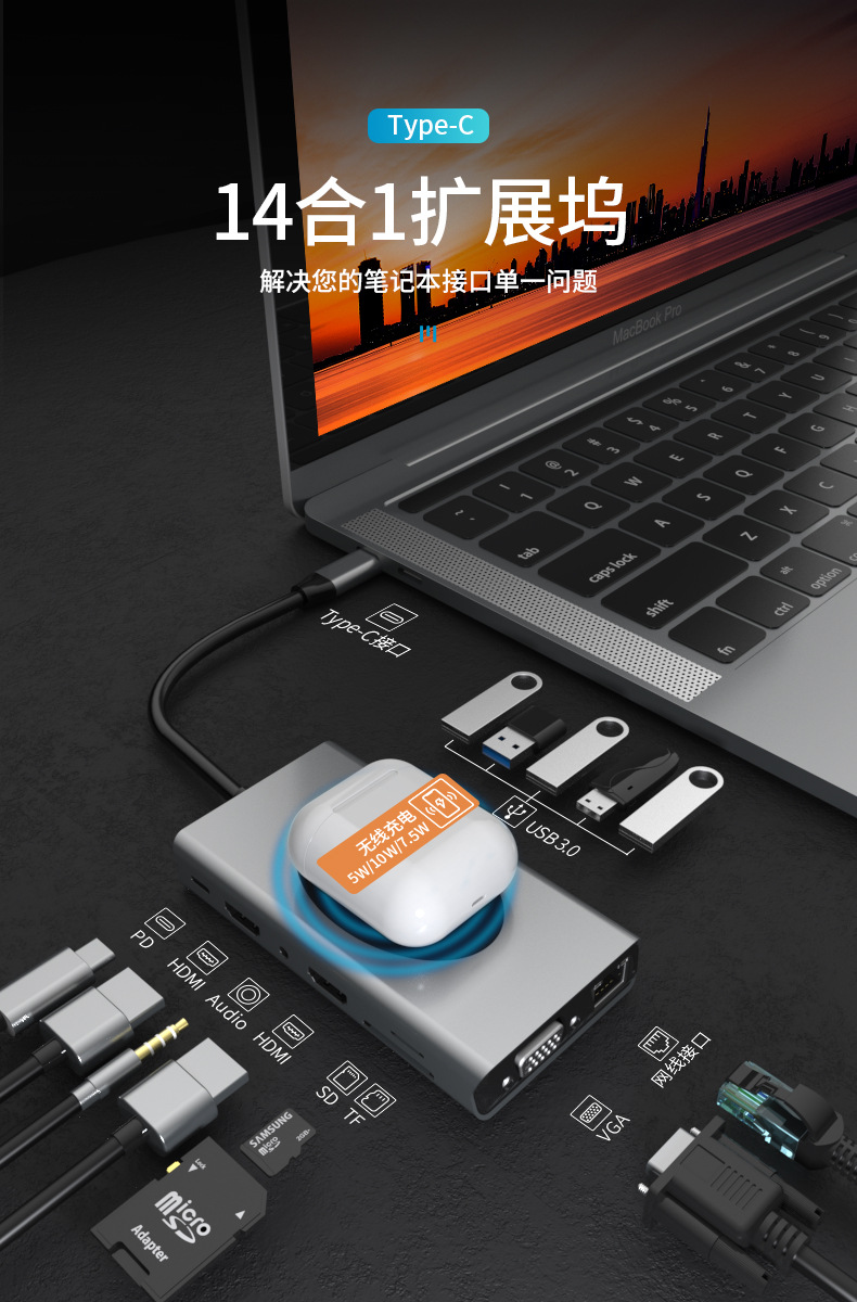 국경 간 핫 세일 유형 c hun 도킹 스테이션 usb 허브 다기능 허브 듀얼 HDMI 기가비트 도킹 스테이션