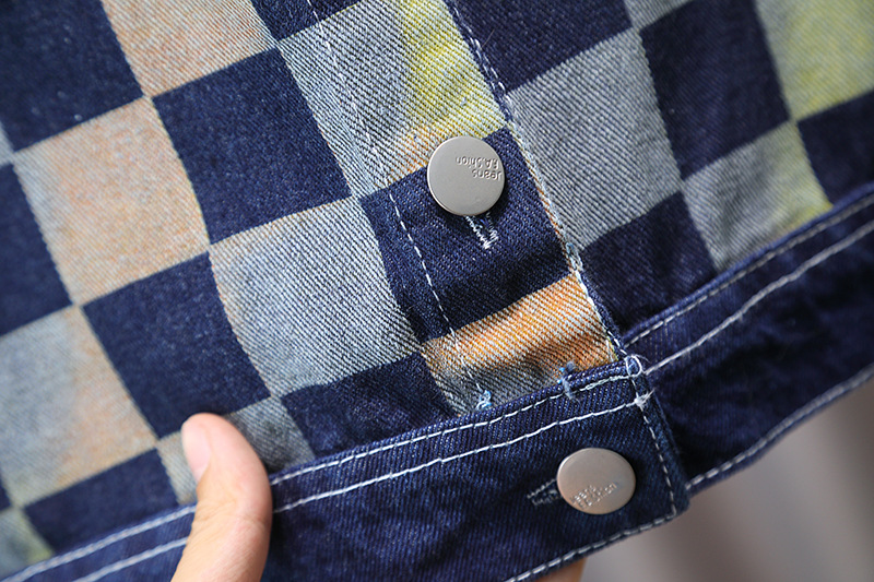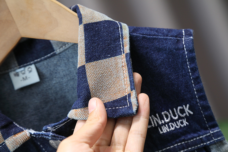 • 블루 그레이 체크 무늬 칼라 (싱글 조끼)