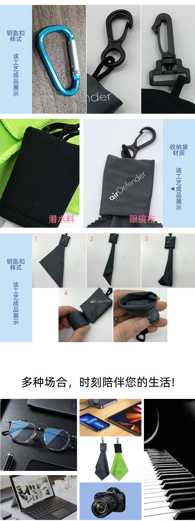교수형 버클 안경 천 선물 슬링 천 열쇠 고리 작은 교수형 가방 극세사 천 휴대용 디지털 인쇄 안경 천