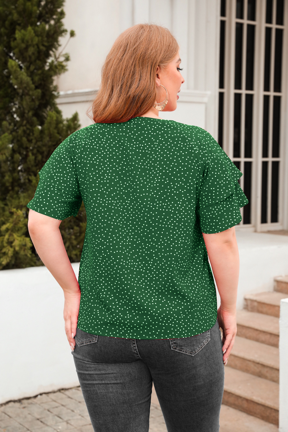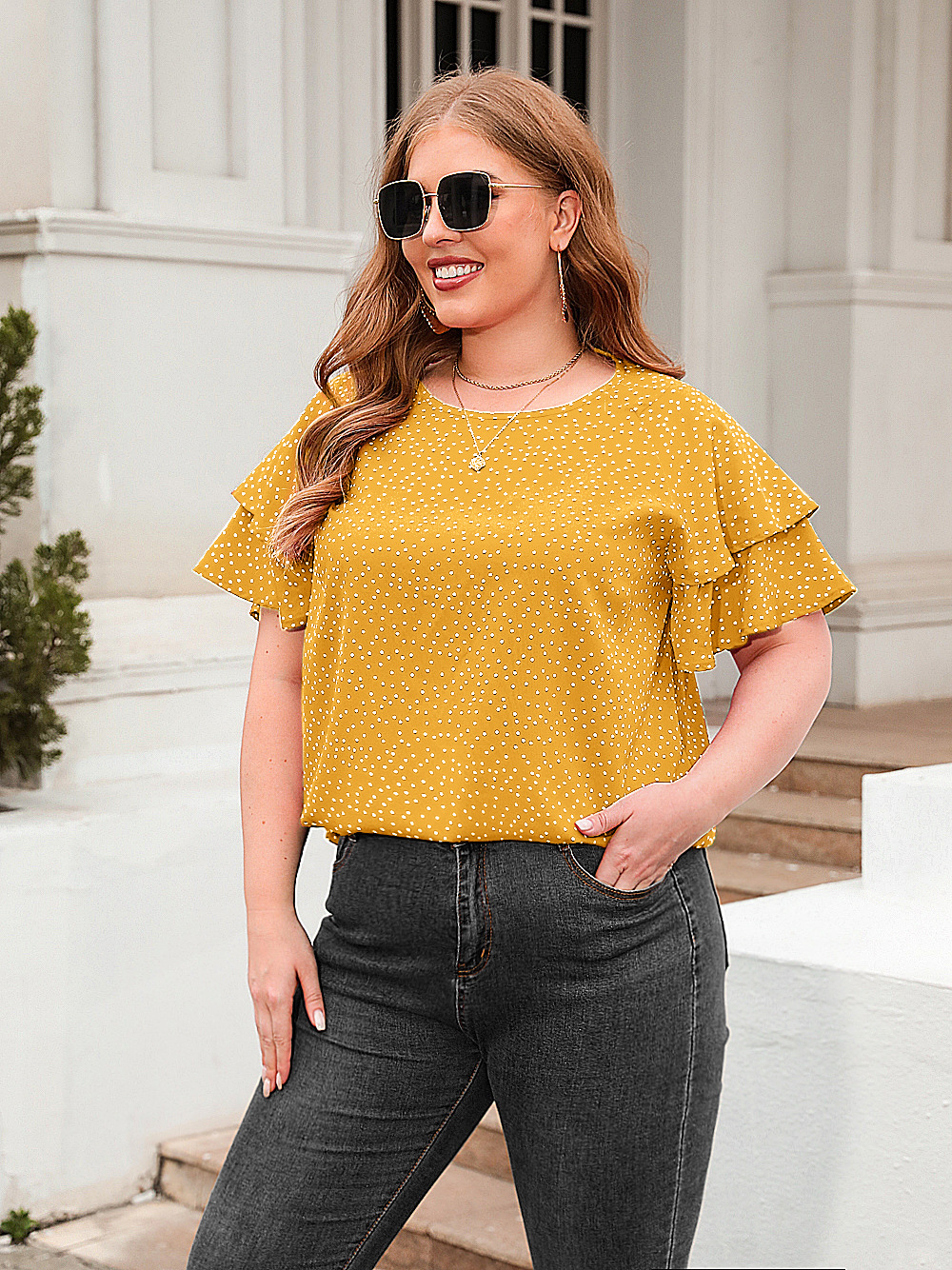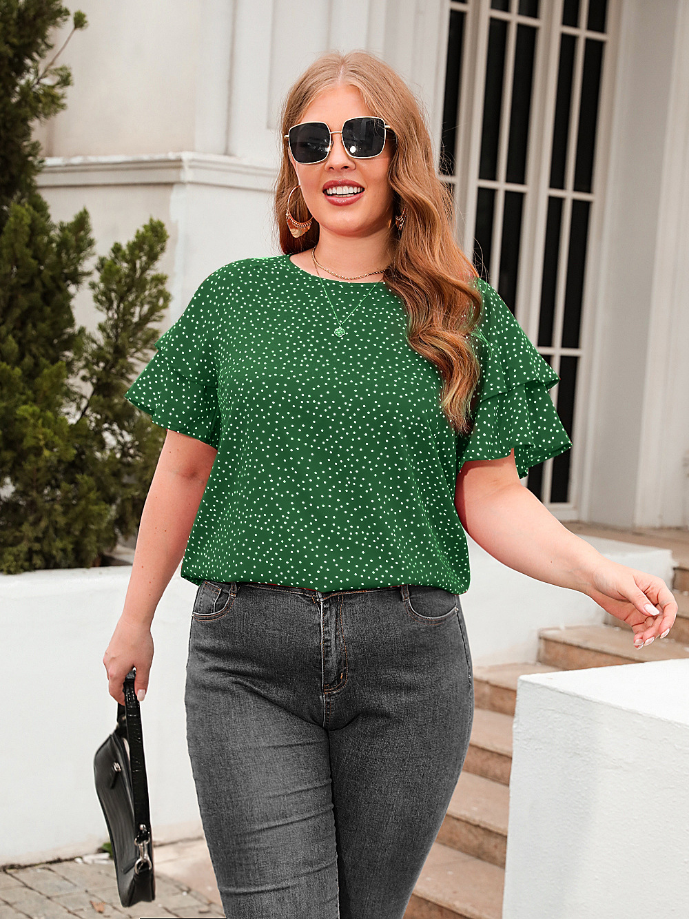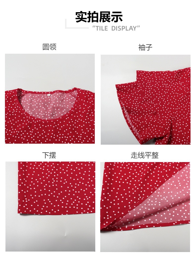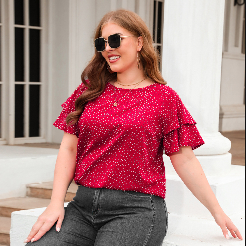아마존 크로스 보더 뉴 웨이브 포인트 느슨한 캐주얼 티셔츠 플러스 사이즈 여성용 크루넥 반팔 통근 플러스 사이즈 탑