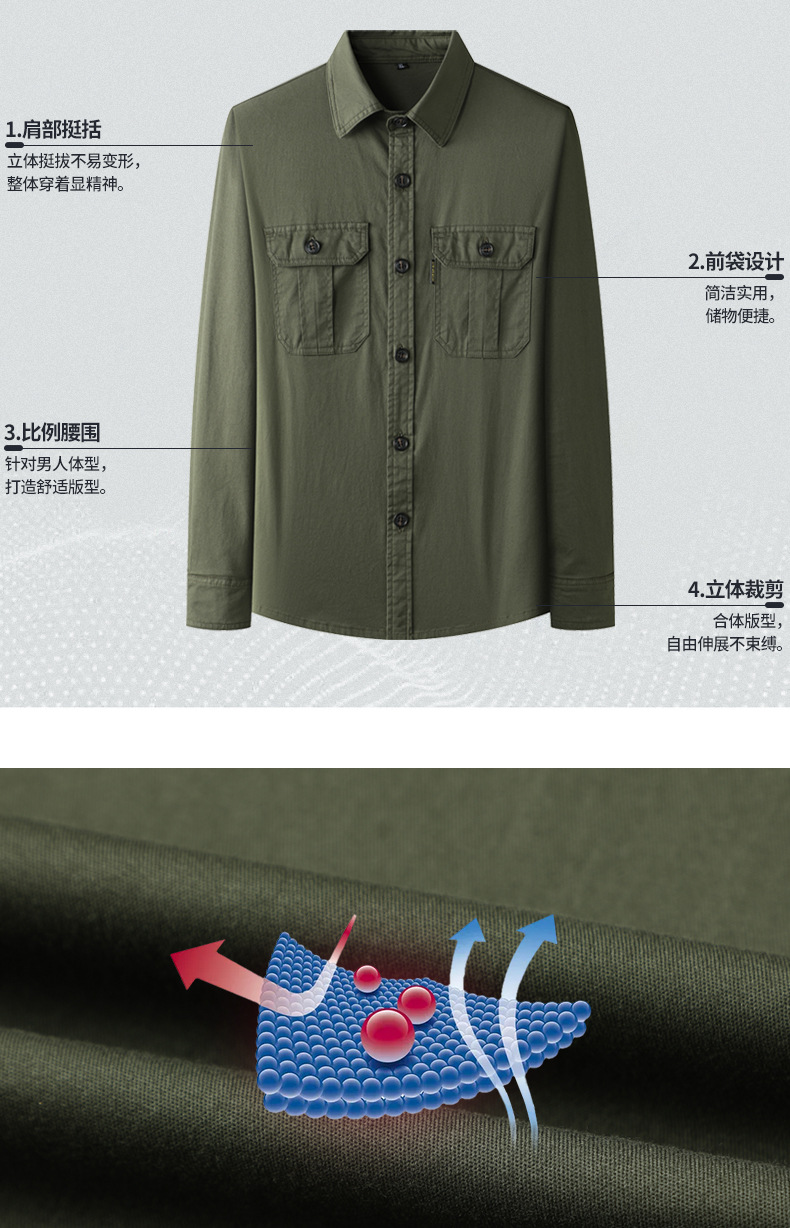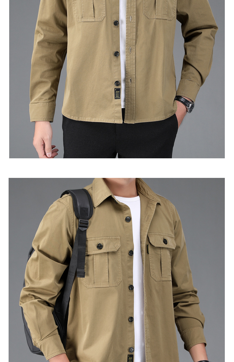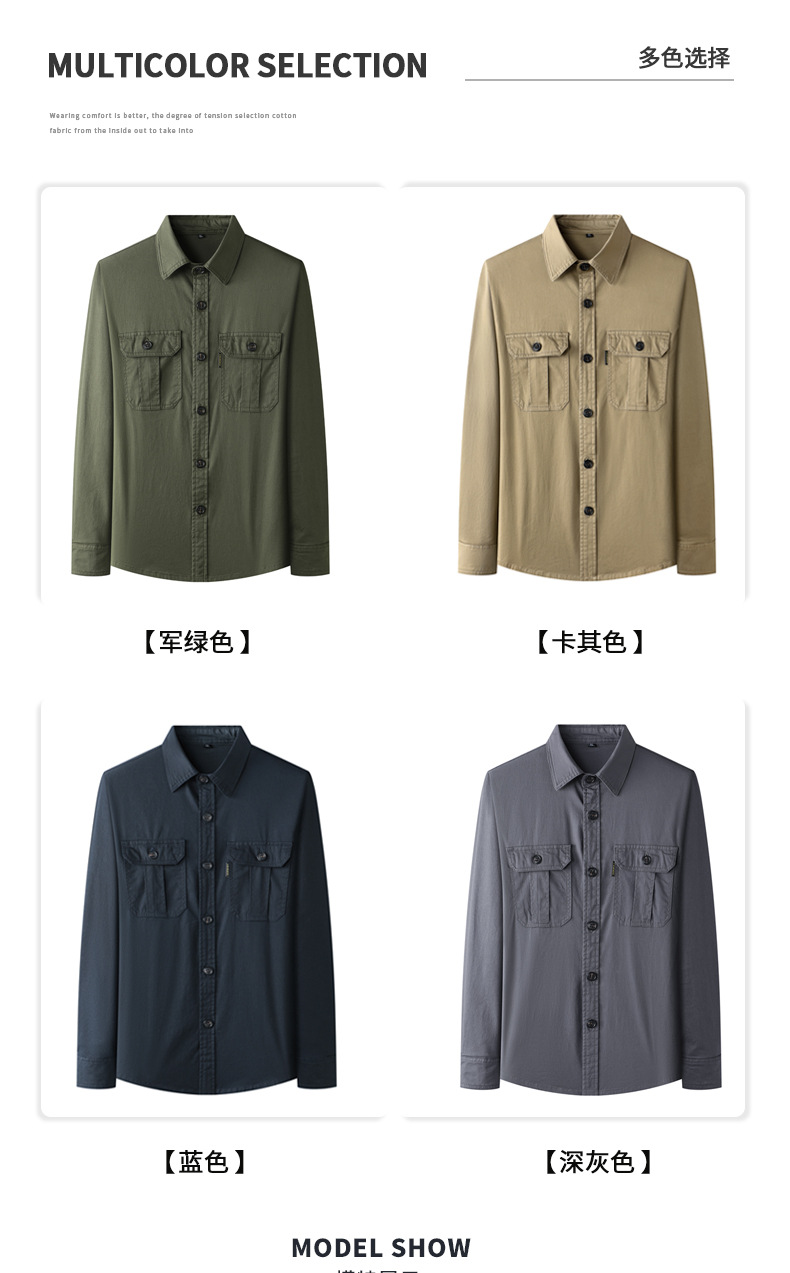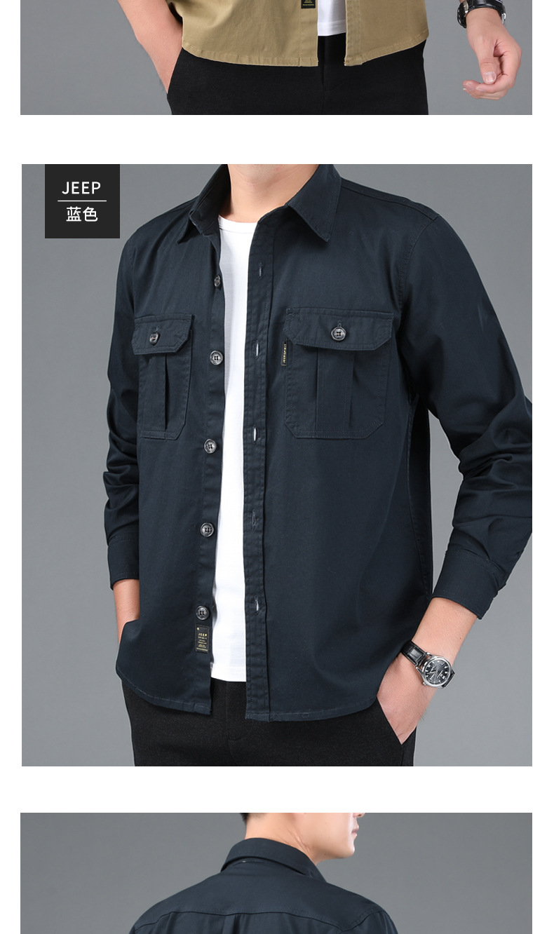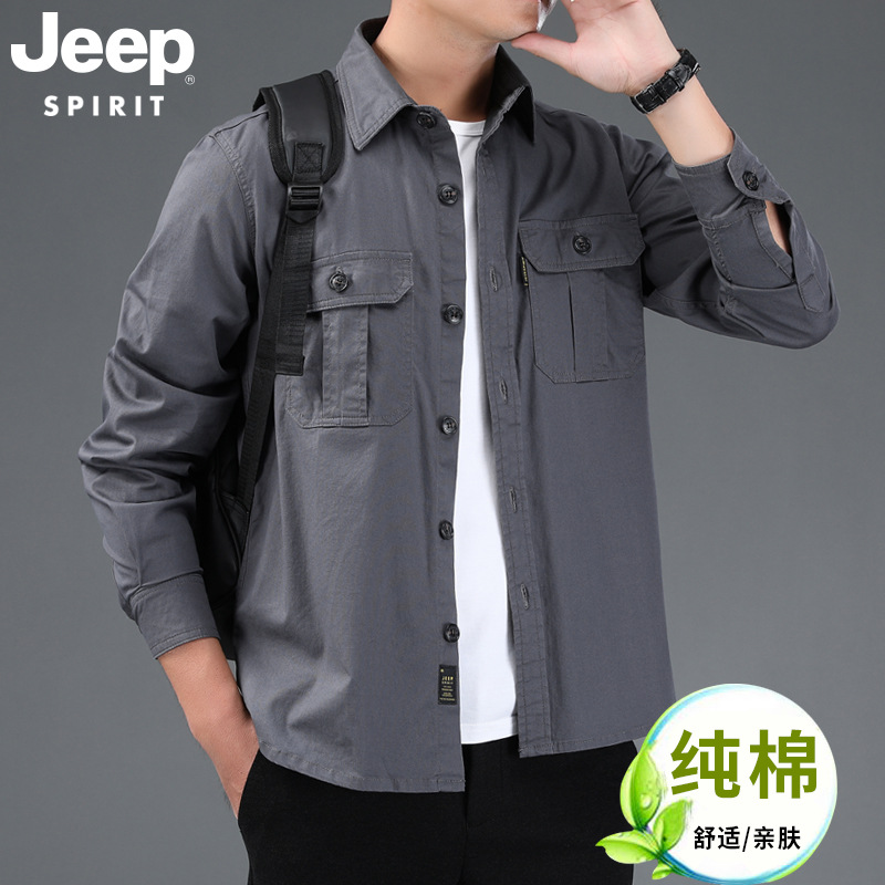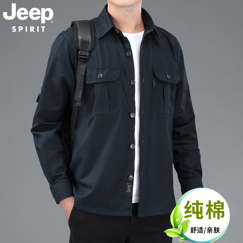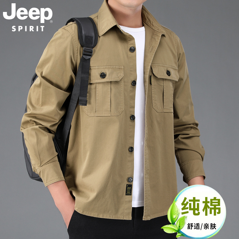 JEEP SPIRIT 봄과 여름 남자 최고 셔츠 긴 소매 재킷 캐주얼 작업복 티셔츠 플러스 사이즈 느슨한 원피스스토어 가기