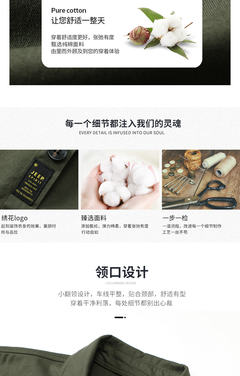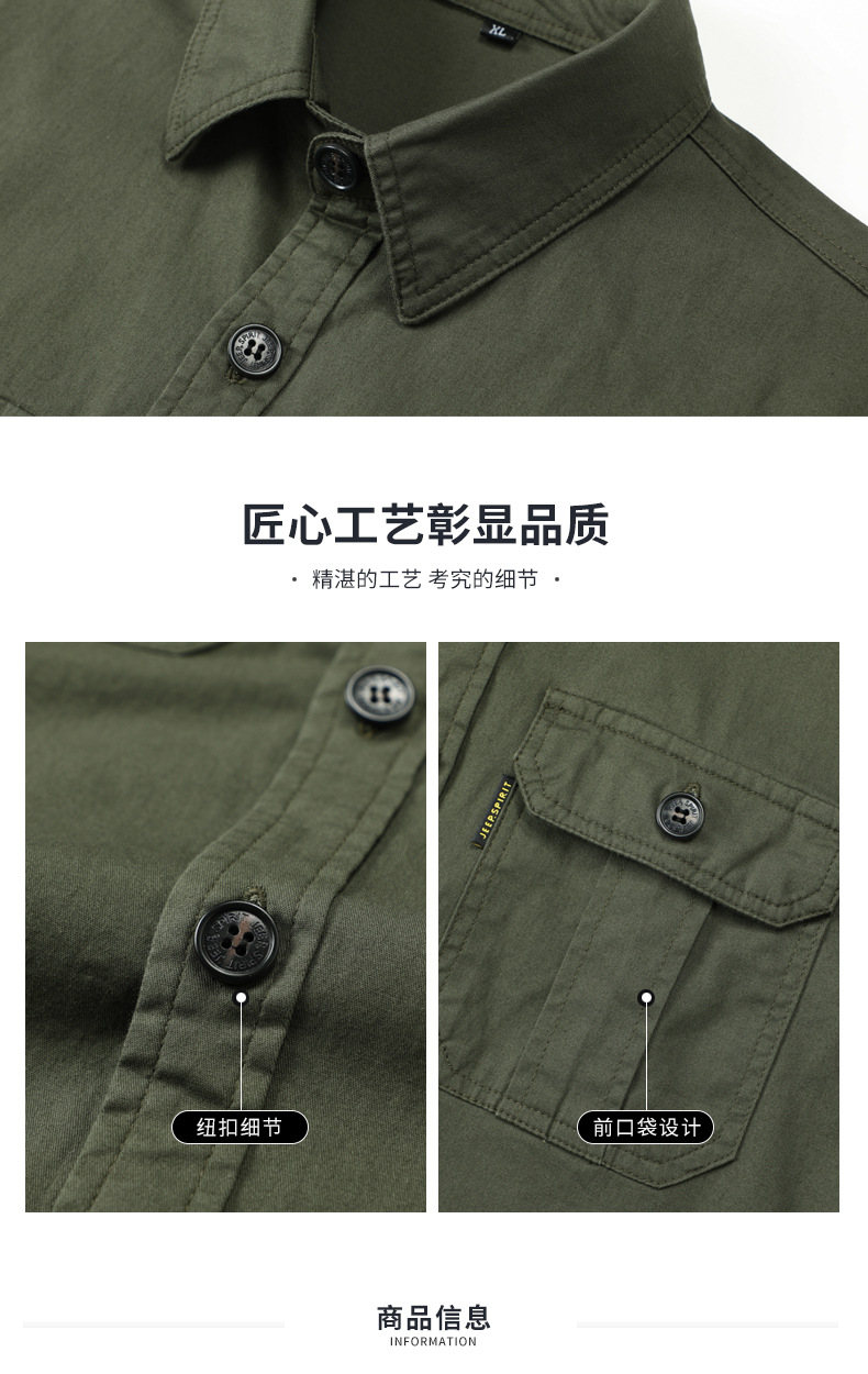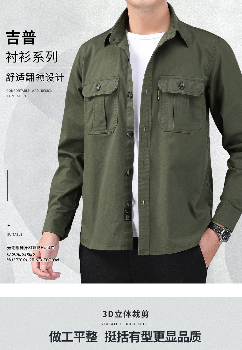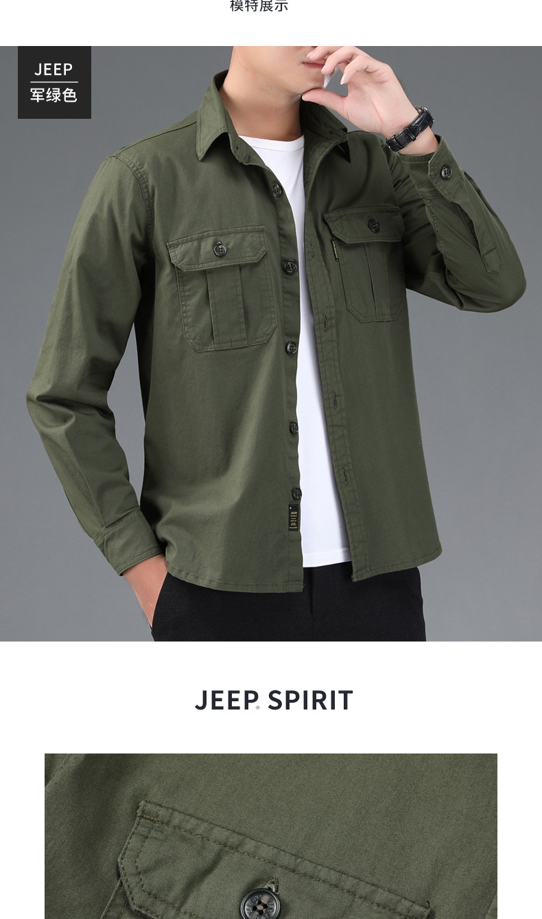 JEEP SPIRIT 봄과 여름 남자 최고 셔츠 긴 소매 재킷 캐주얼 작업복 티셔츠 플러스 사이즈 느슨한 원피스