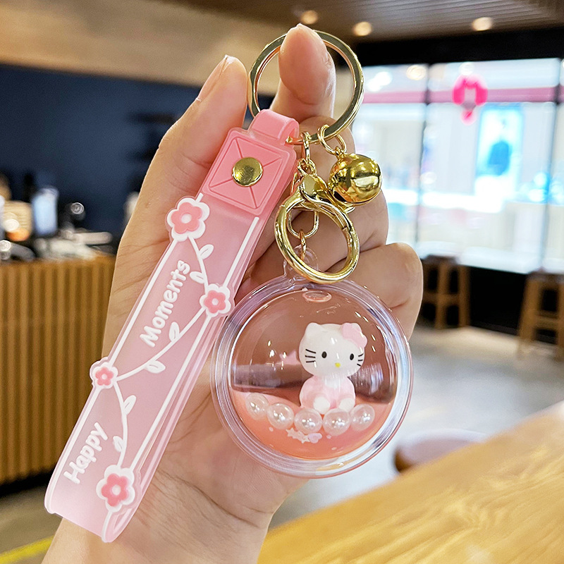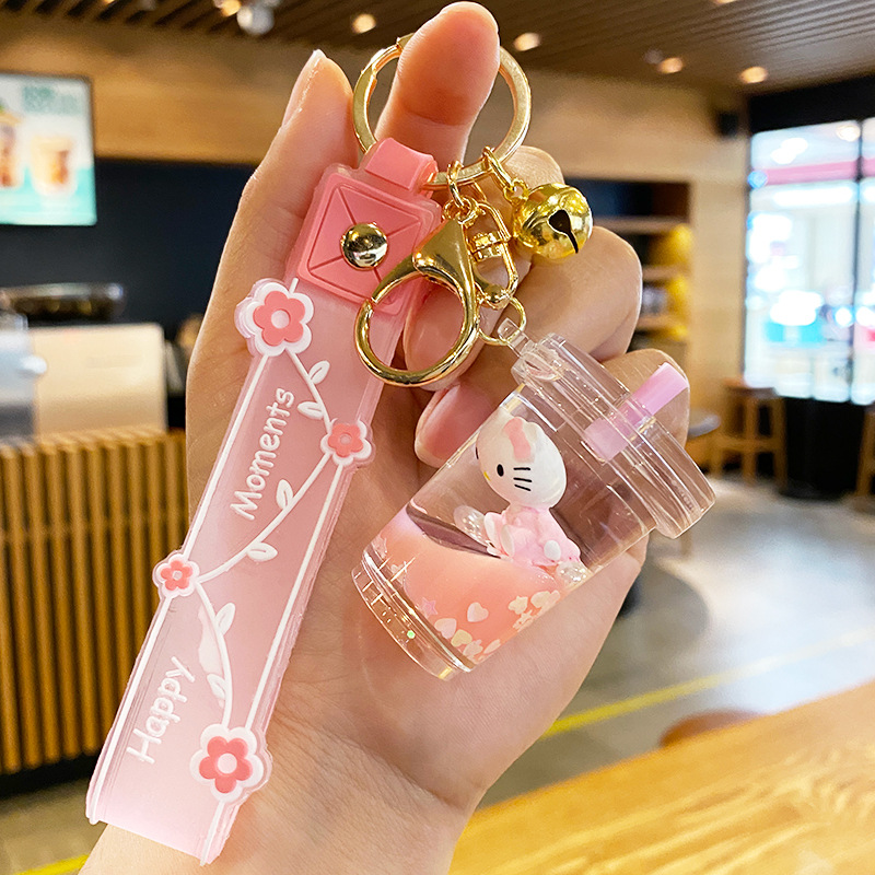 2023 년 토끼 열쇠 고리 여자의 절묘한 귀여운 kt 고양이 오일 인 퀵샌드 어린이 책가방 펜던트 자동차 열쇠 고리