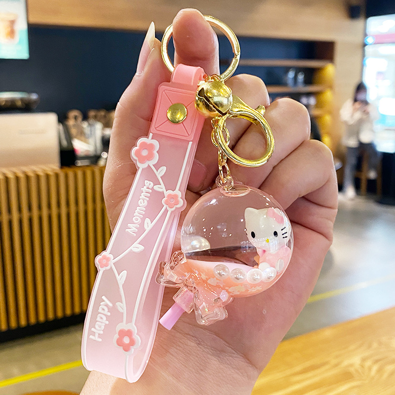 2023 년 토끼 열쇠 고리 여자의 절묘한 귀여운 kt 고양이 오일 인 퀵샌드 어린이 책가방 펜던트 자동차 열쇠 고리스토어 가기