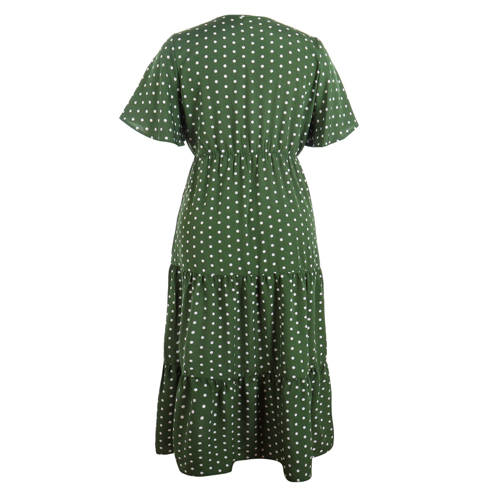2025 여름 뉴 플러스 사이즈 여성 플러스 사이즈 웨이브 닷 캐주얼 휴가 원피스 V-넥 우아한 대형 스윙 중간 길이 원피스