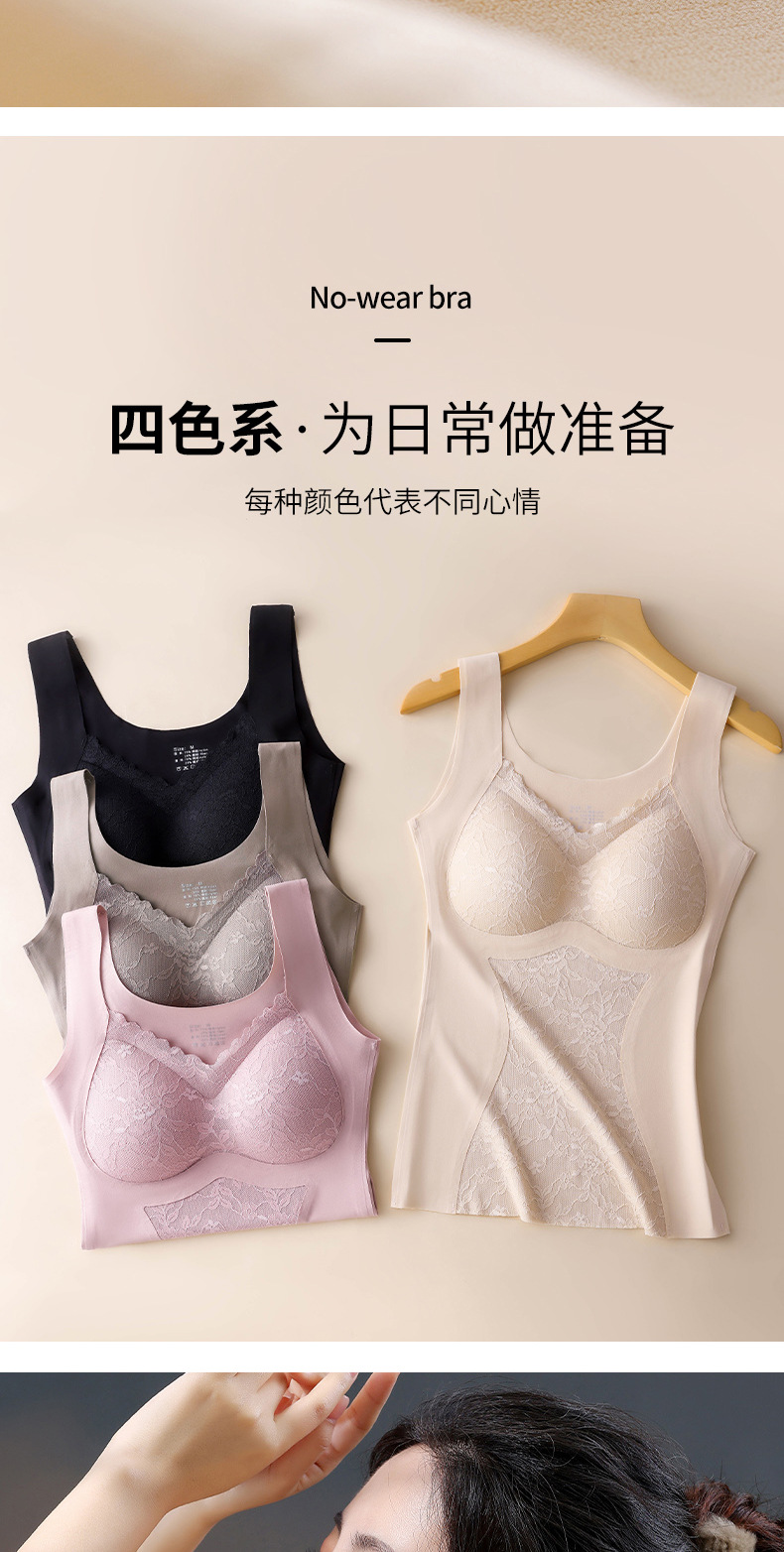 2024 새로운 레이스 조끼 여성 유방 패드 슬링 수집 다목적 아름다운 다시 탑 Bottoming 얇은 얼음 실크 조끼스토어 가기