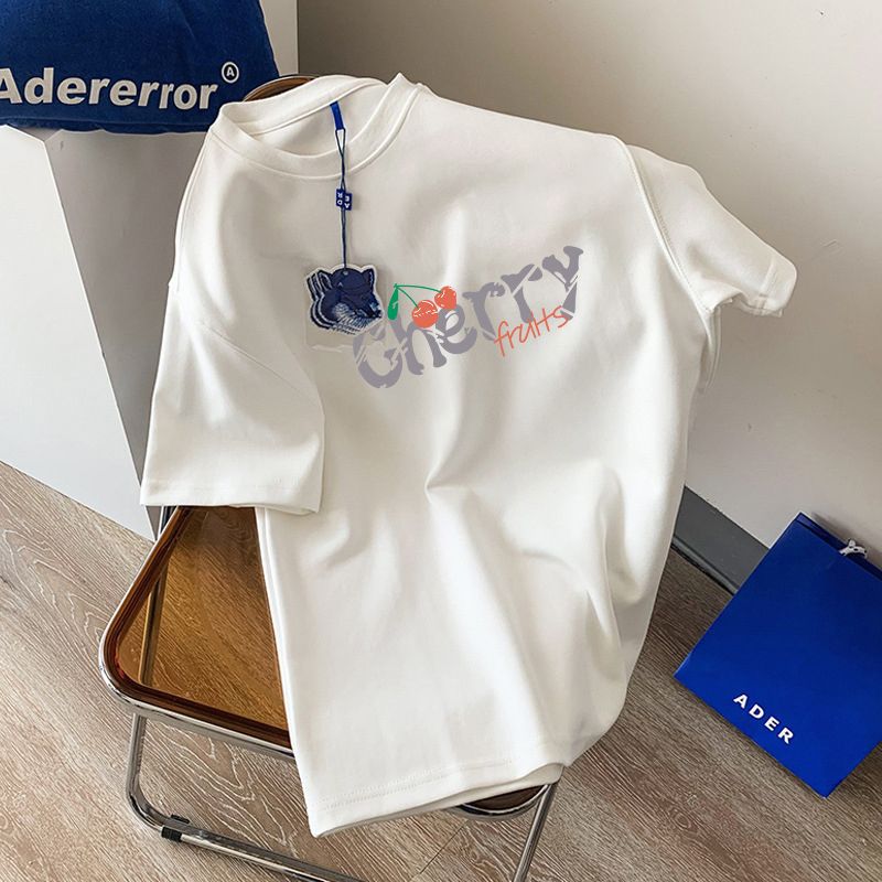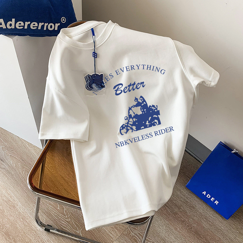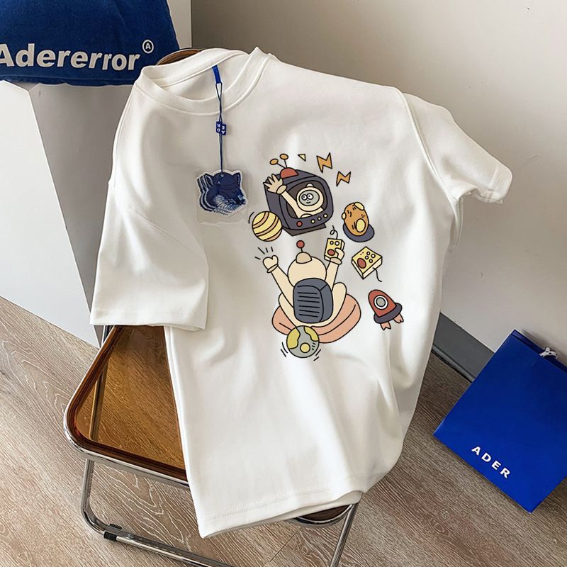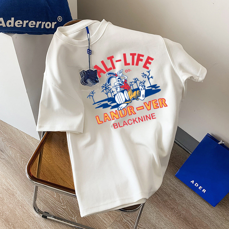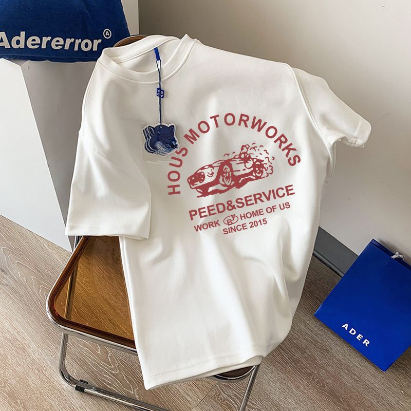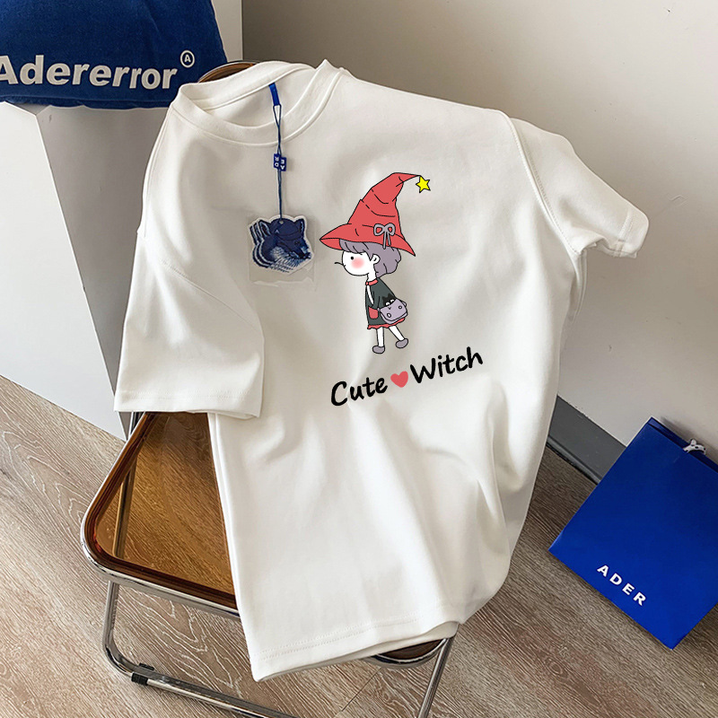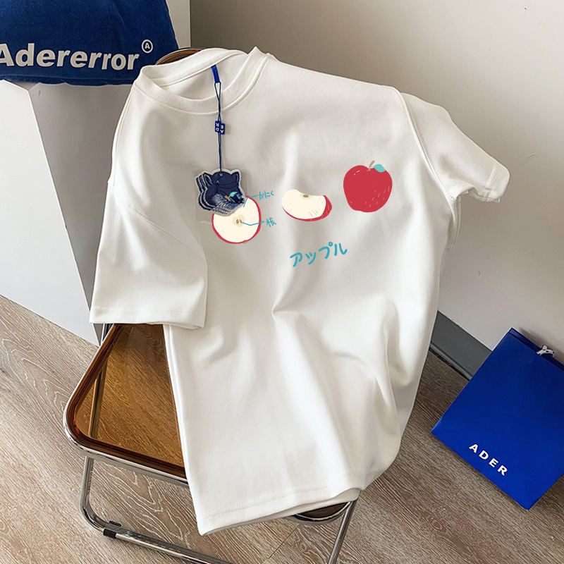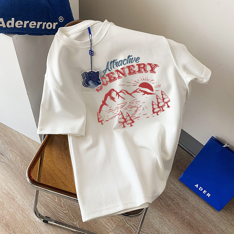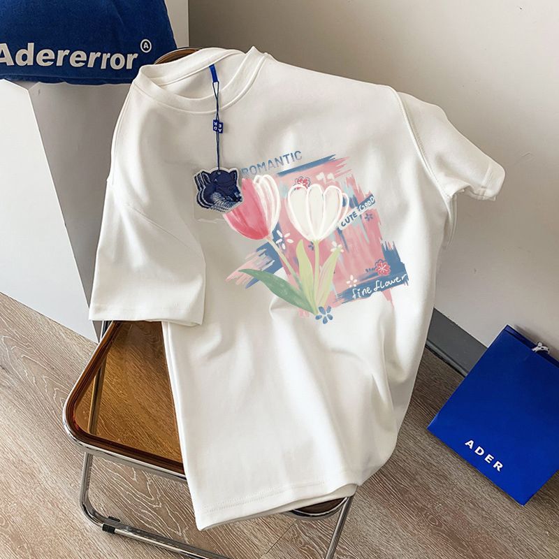 트렌디 인 화이트 코튼 반팔 티셔츠 여성 여름 신작 루즈 프린트 오버 숄더 탑 티셔츠 바닥 셔츠스토어 가기