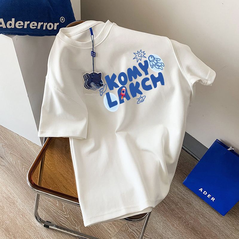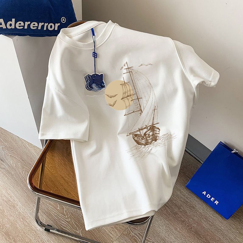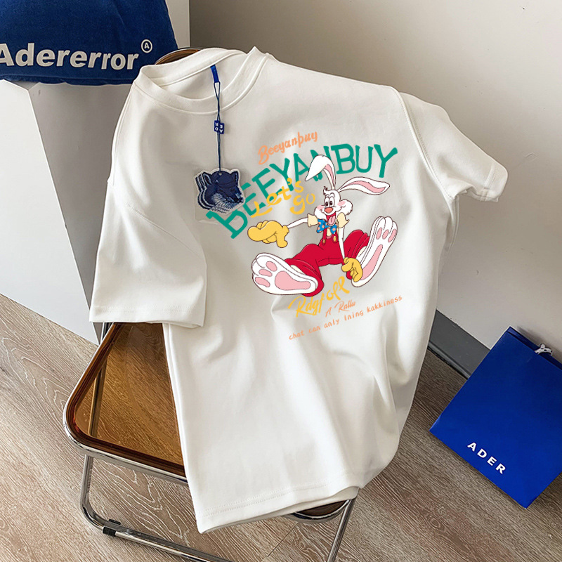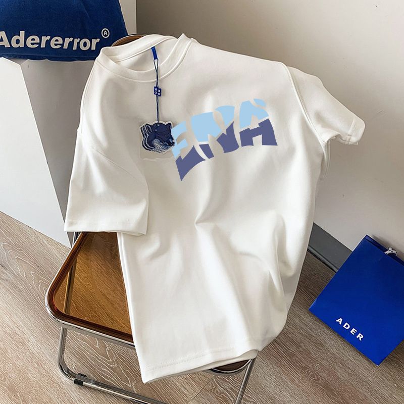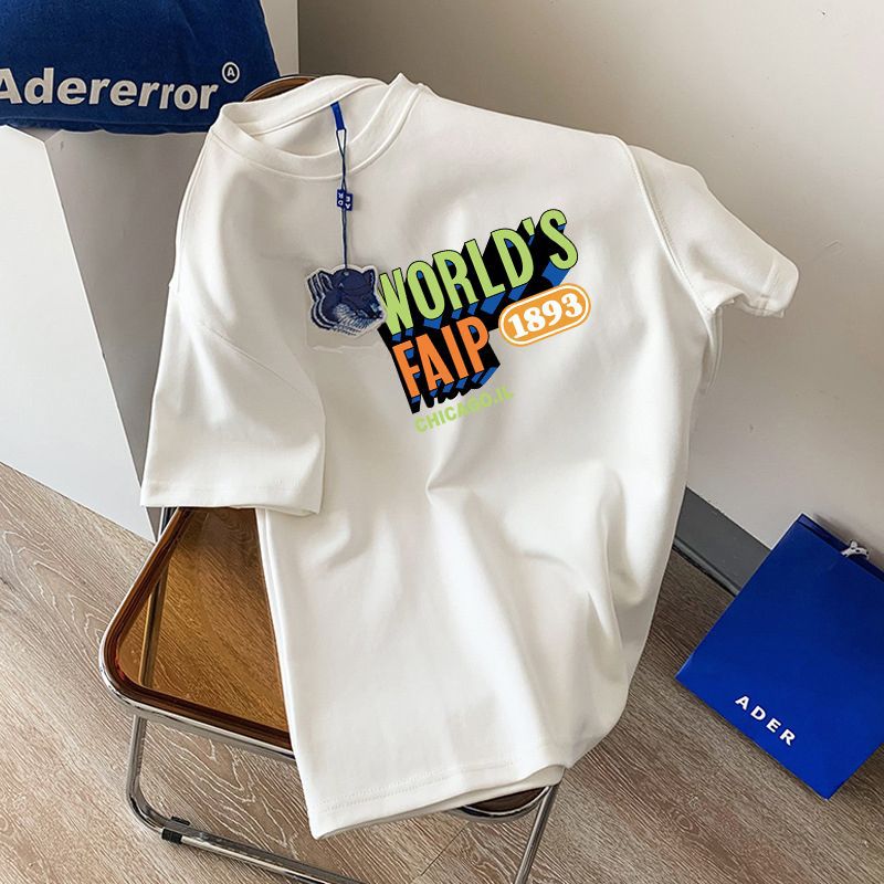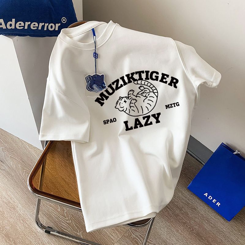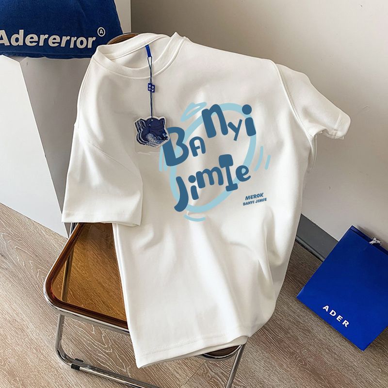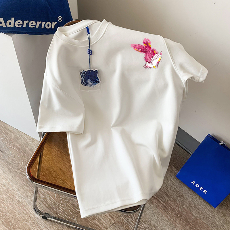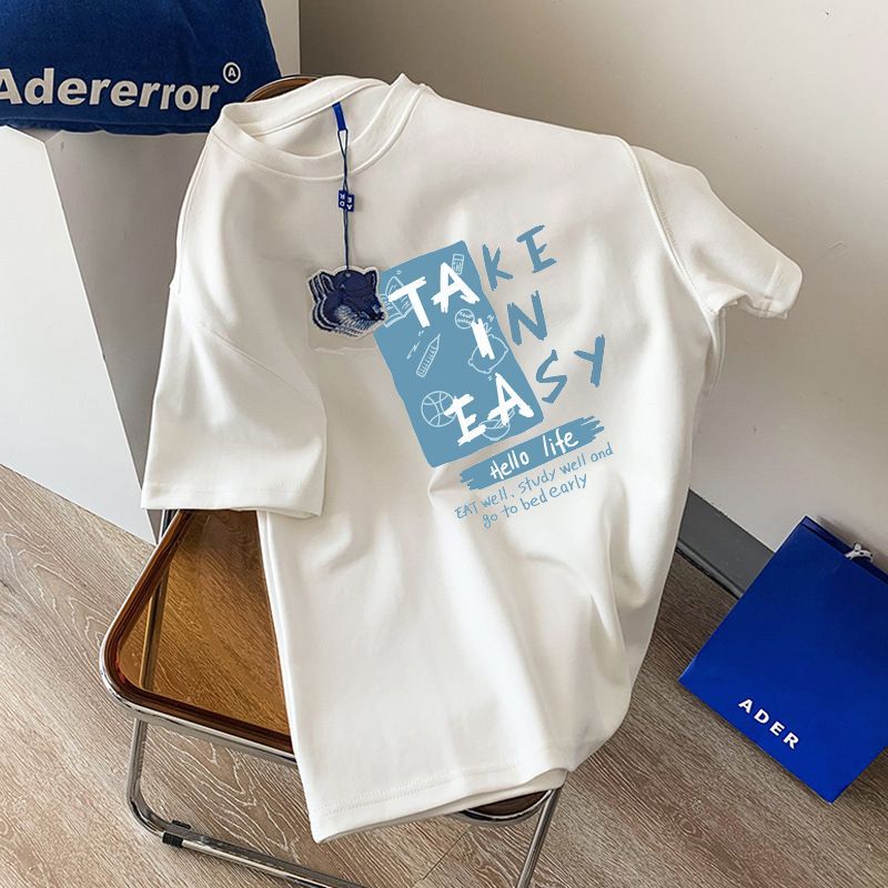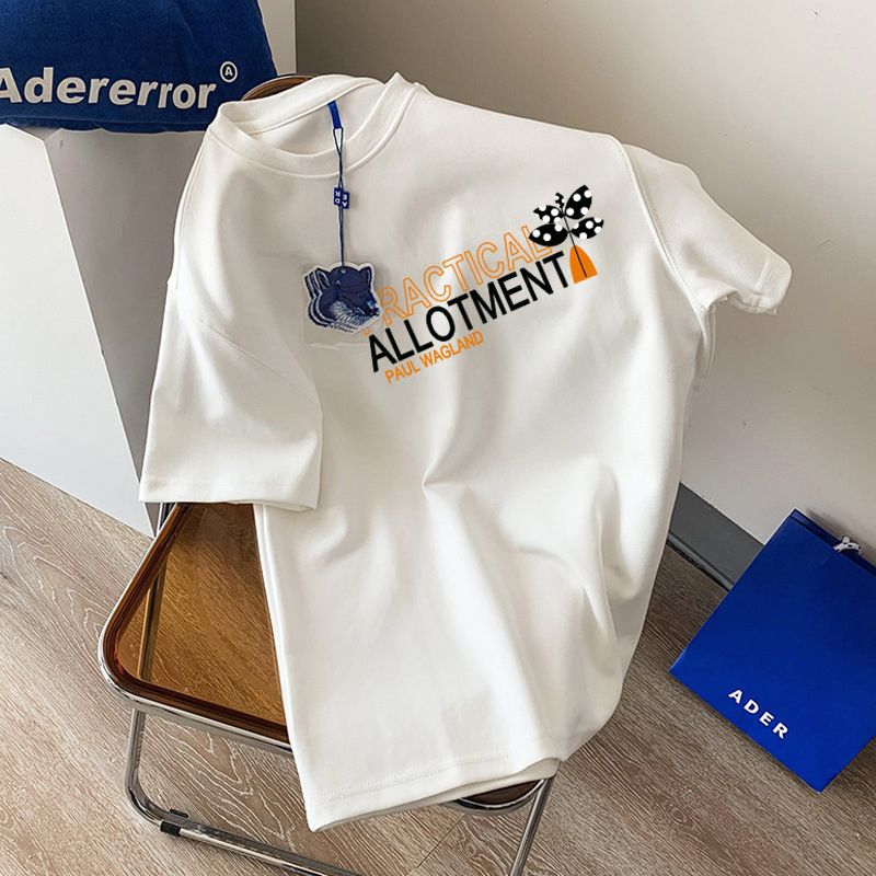 트렌디 인 화이트 코튼 반팔 티셔츠 여성 여름 신작 루즈 프린트 오버 숄더 탑 티셔츠 바닥 셔츠스토어 가기