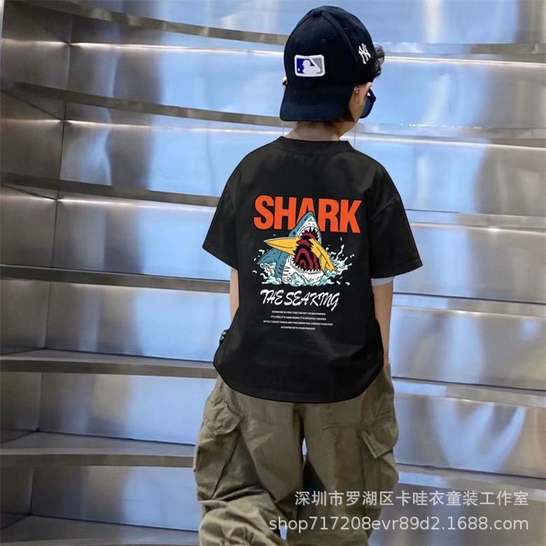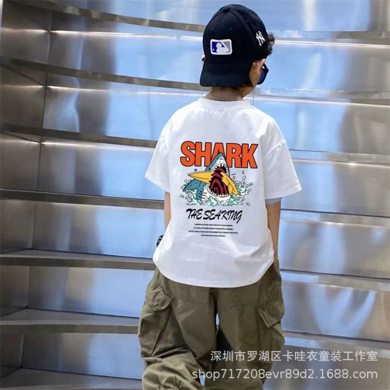 여름 어린이 면 반팔 탑 한국 봄 유행 부드러운 면 라운드 넥 베이스 셔츠 미드 아동용 반팔 티셔츠스토어 가기