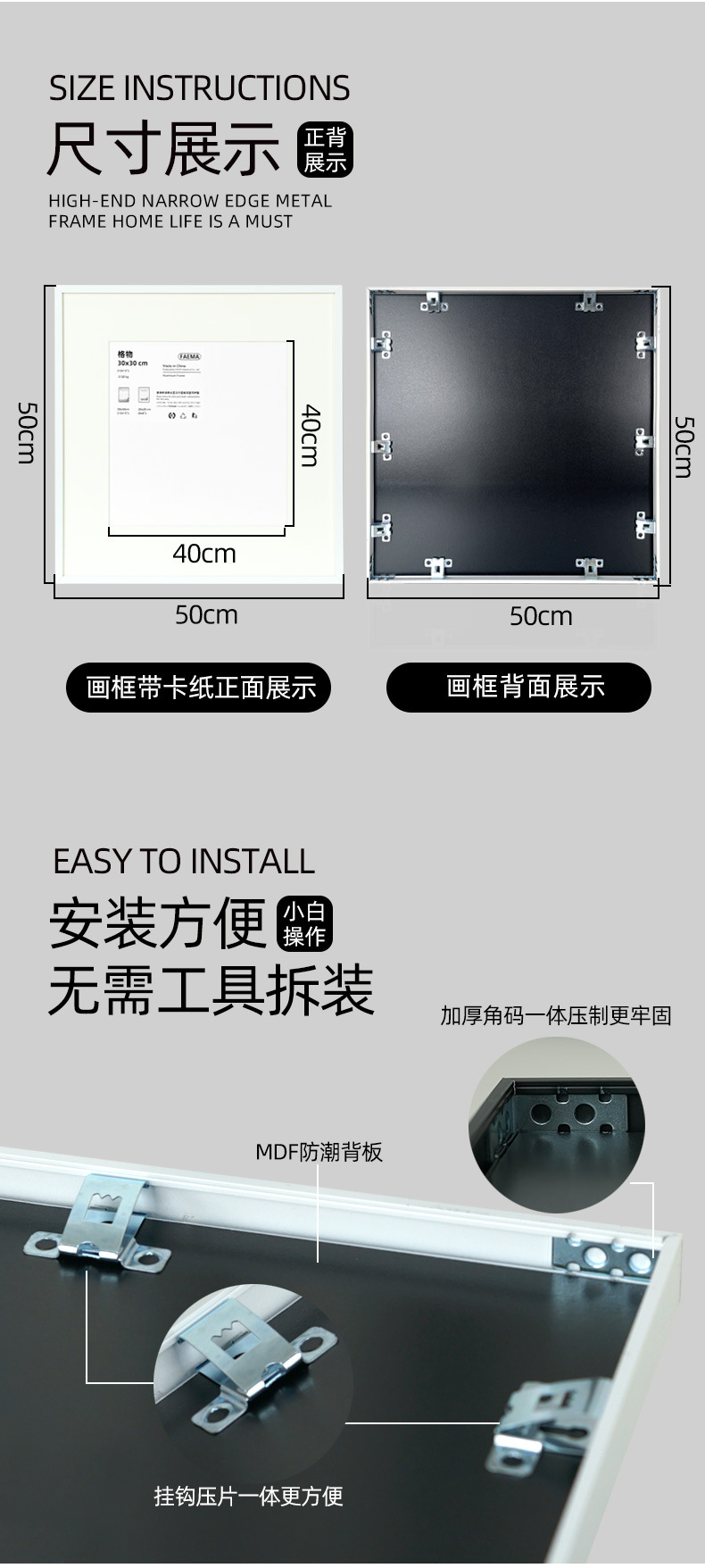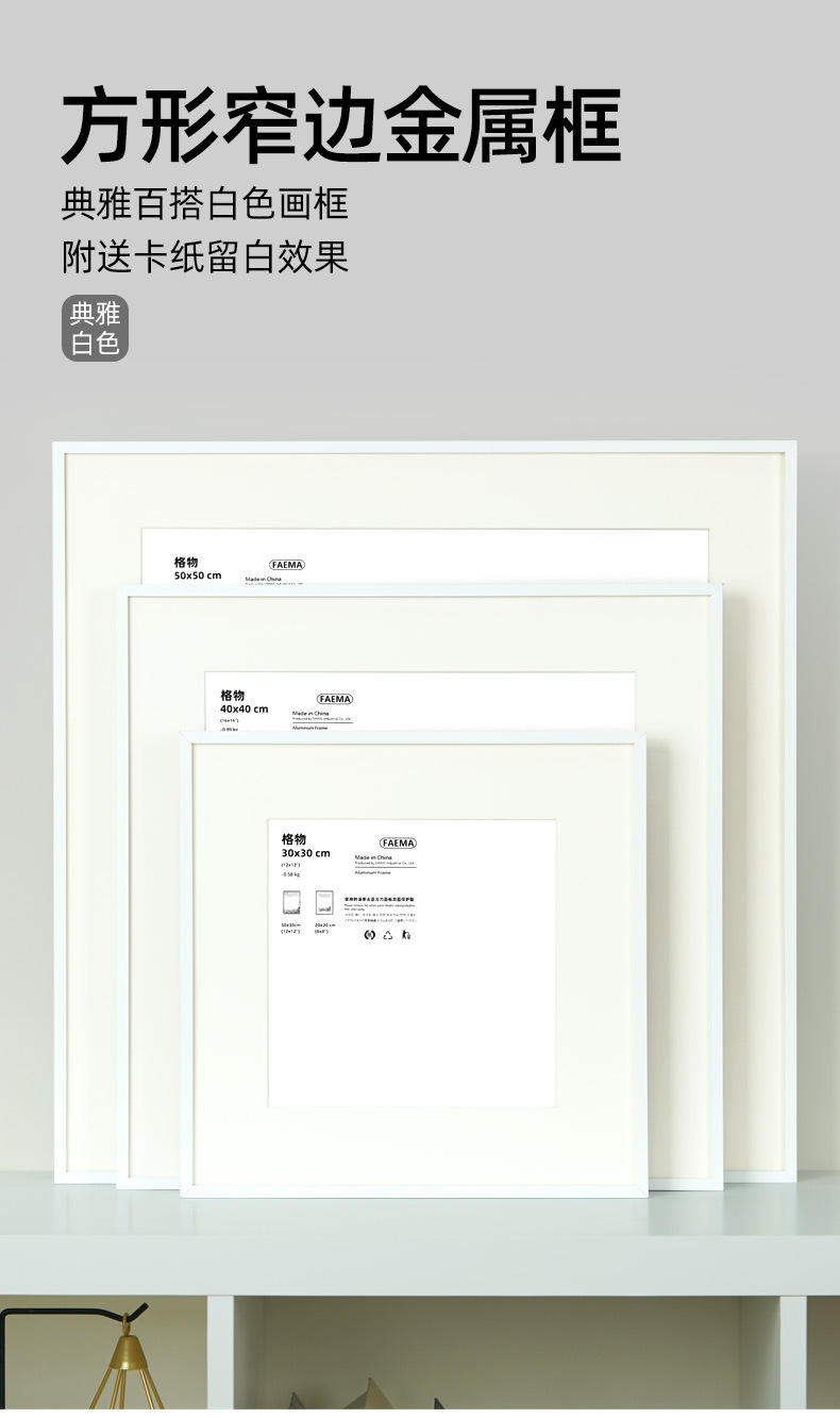 화이트 스퀘어 포토 프레임 교수형 벽 좁은 사이드 액자 장착 20 30 40 50 골판지 흰색 프레임을 남길 수 있습니다