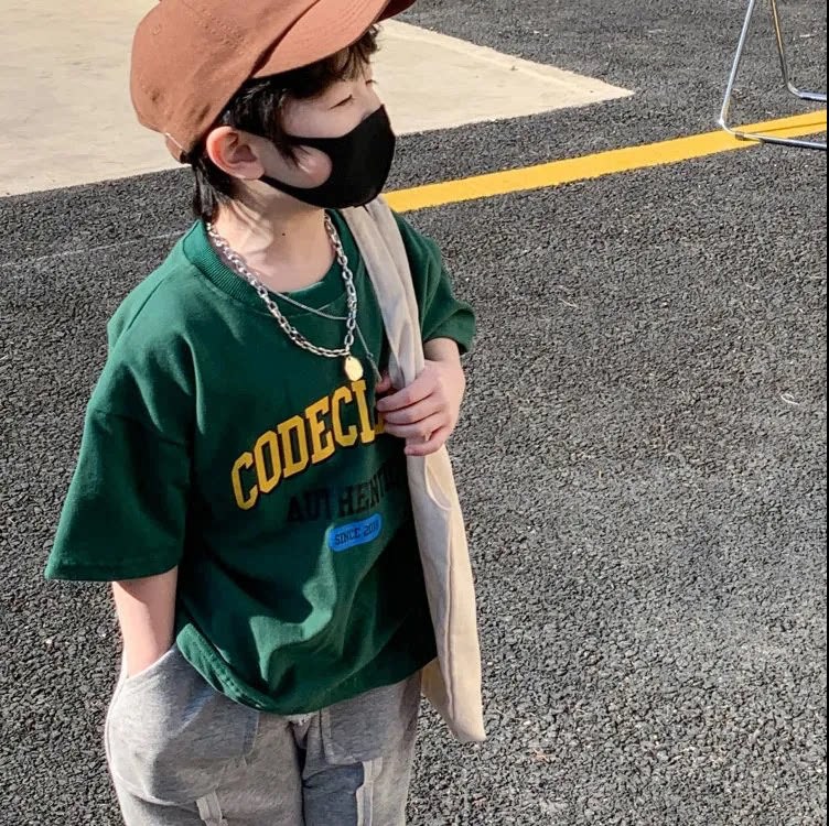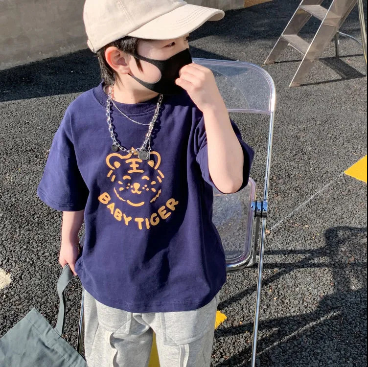 남아 반팔 면 여름 2023 새로운 아동용 티셔츠 루즈한 모든 매치 반팔 웨스턴 스타일 트렌디 미드 라지 아동용 탑스토어 가기
