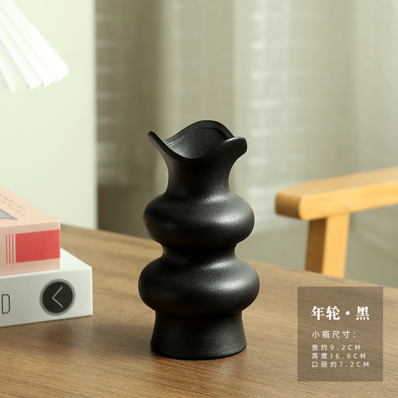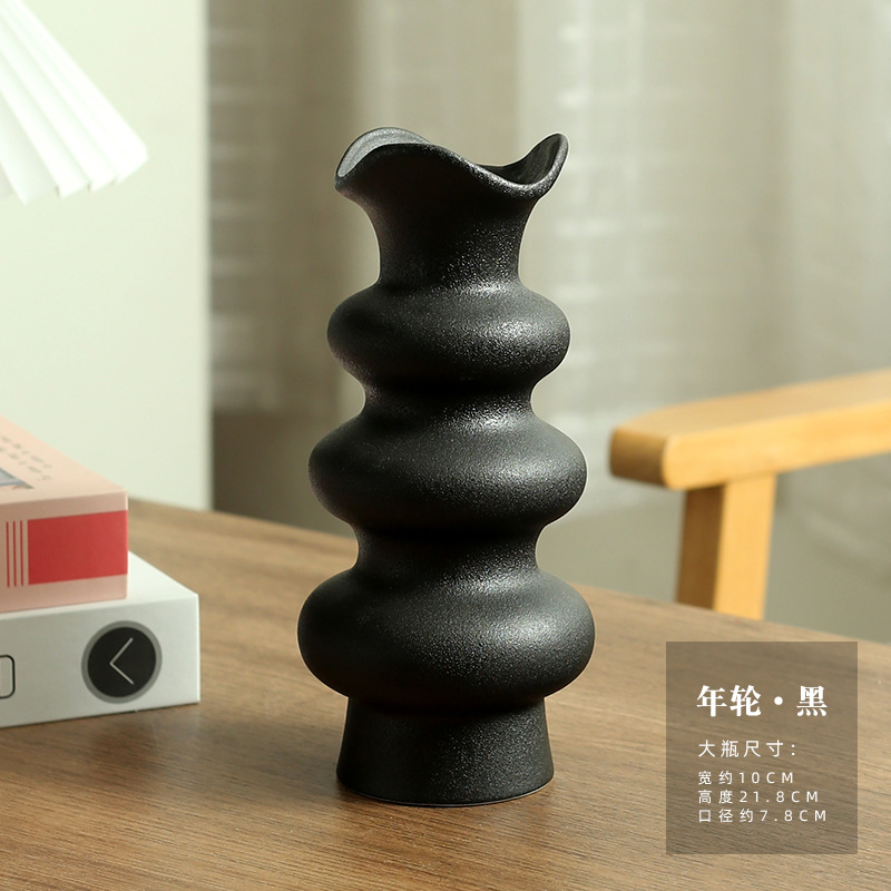 • 원형 연간 반지 꽃병-블랙-소형