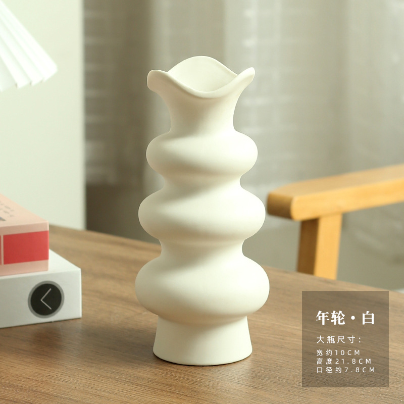 • 원형 연간 반지 꽃병-흰색-작은