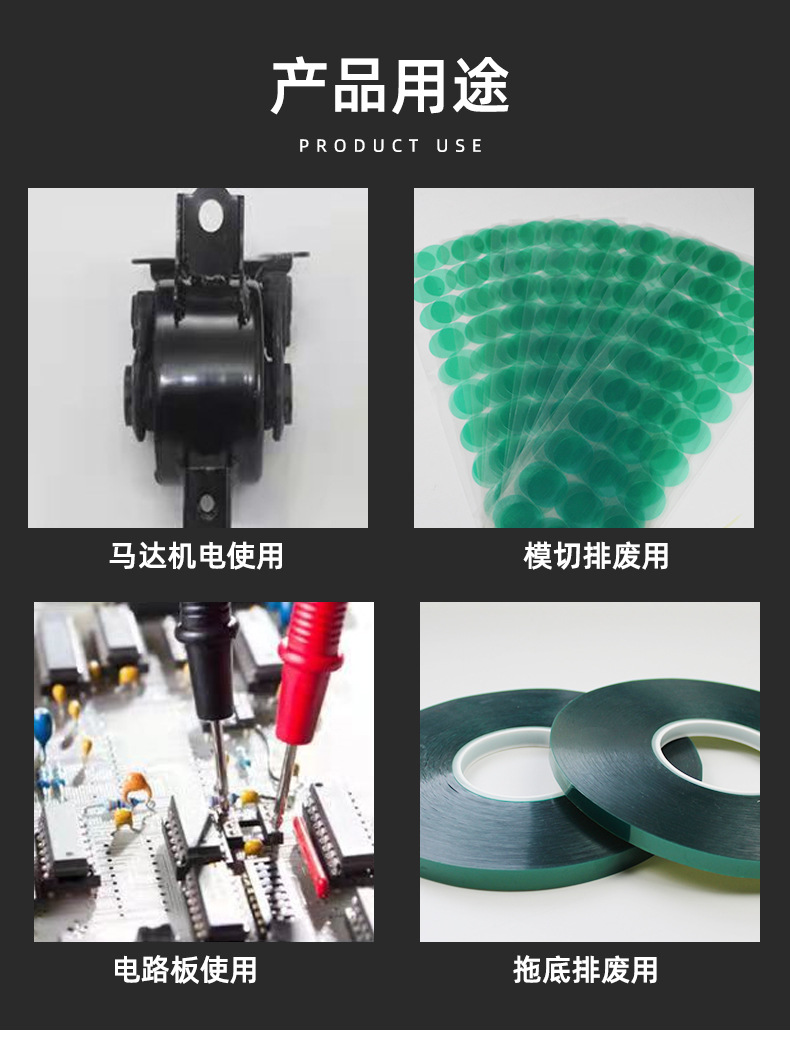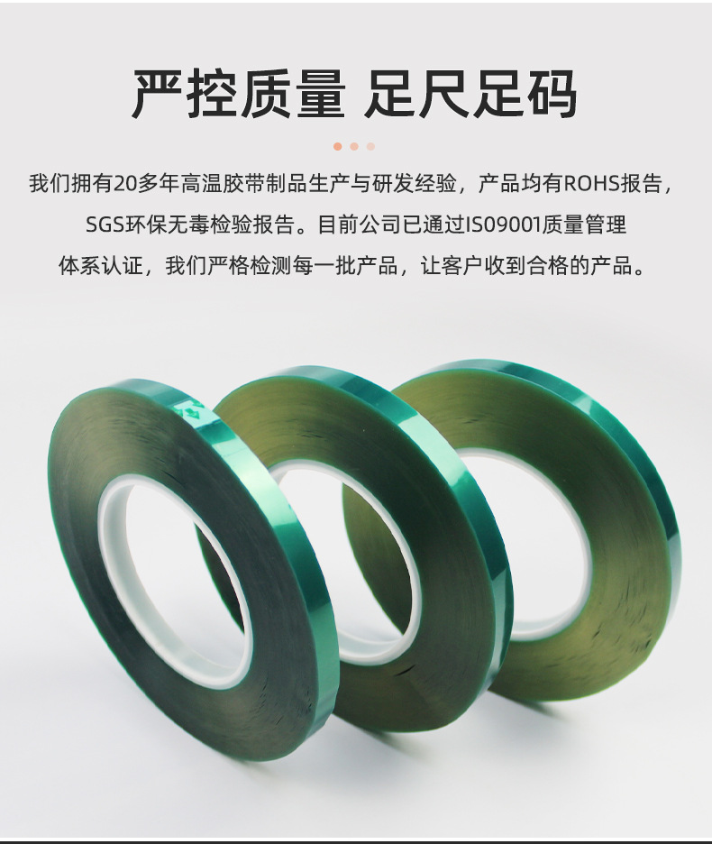 녹색 고온 테이프 고온 애완동물 전기 도금 다이 커팅 처리 실리카 겔 폐기물 200 미터 길이 고온 테이프