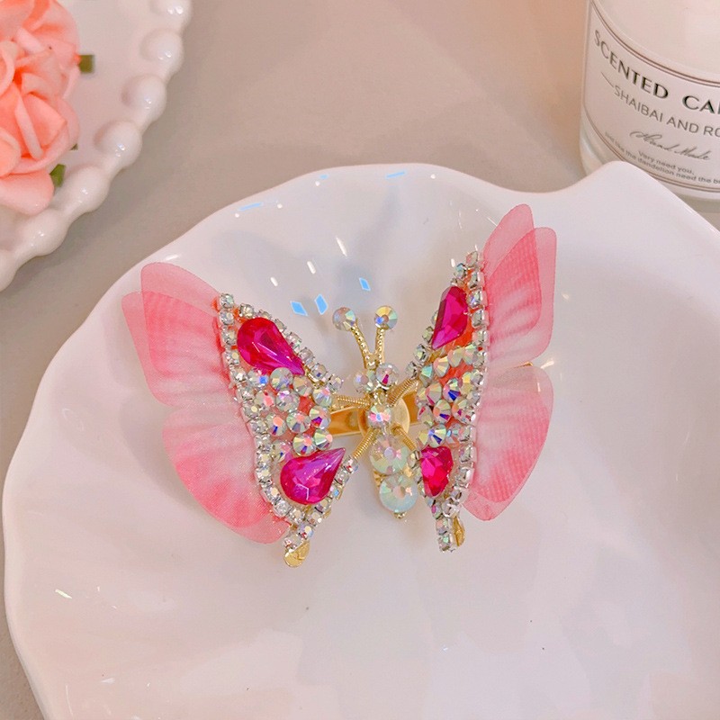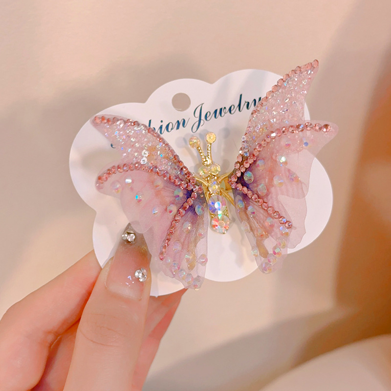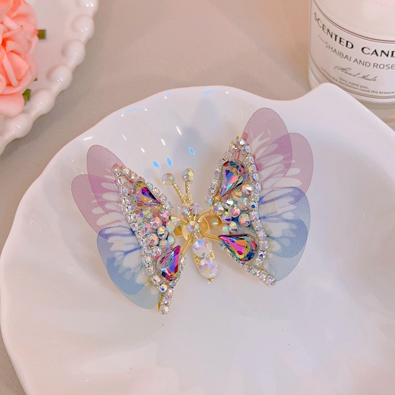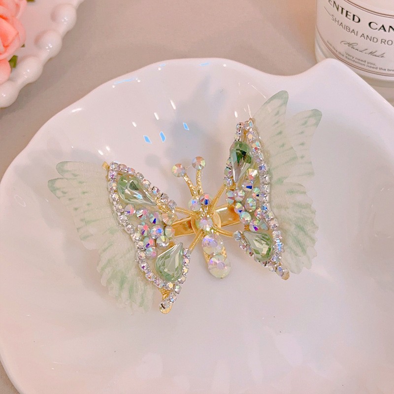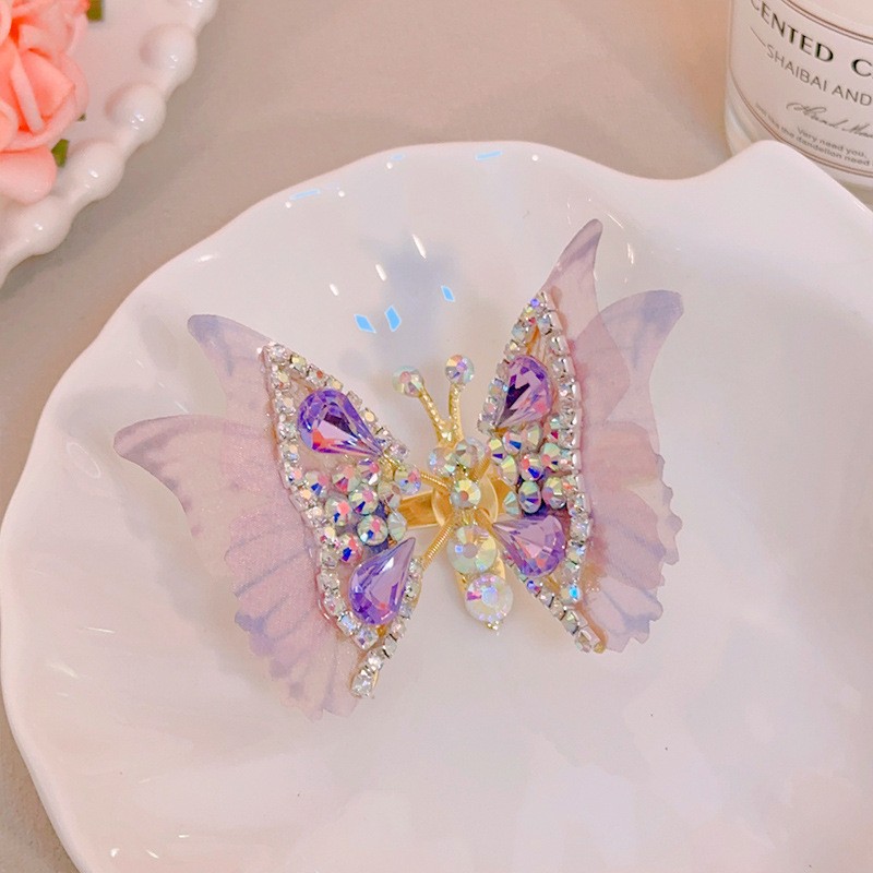 • 다이아몬드 나비 머리핀이 달린 딥 파우더