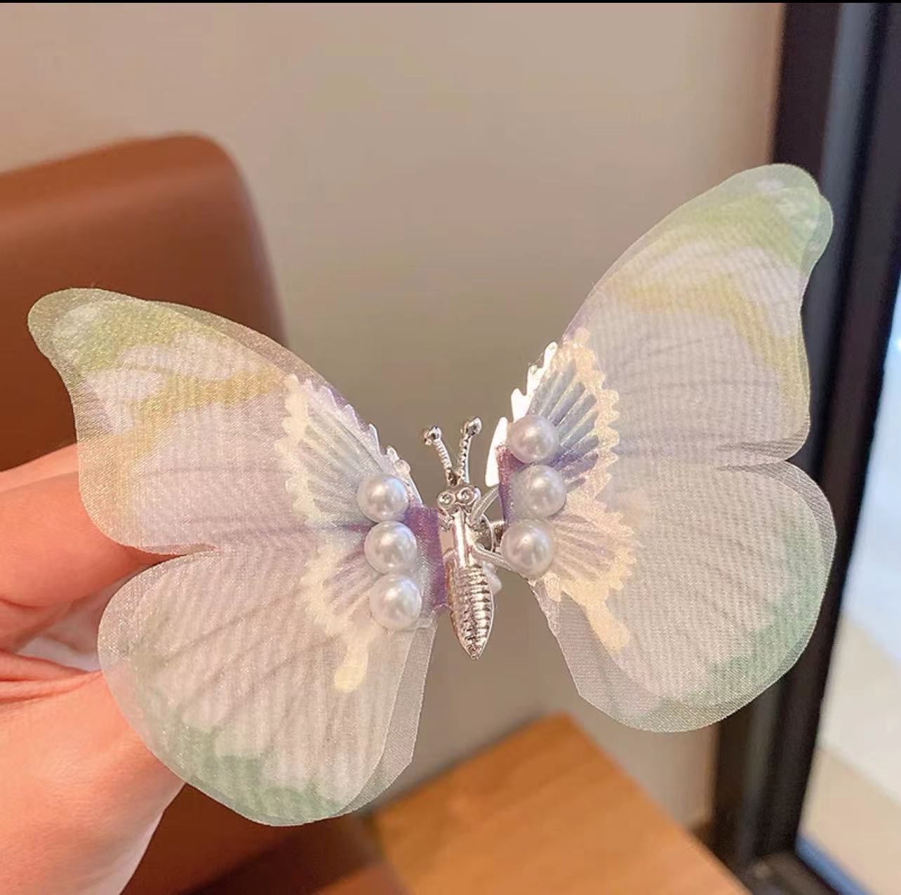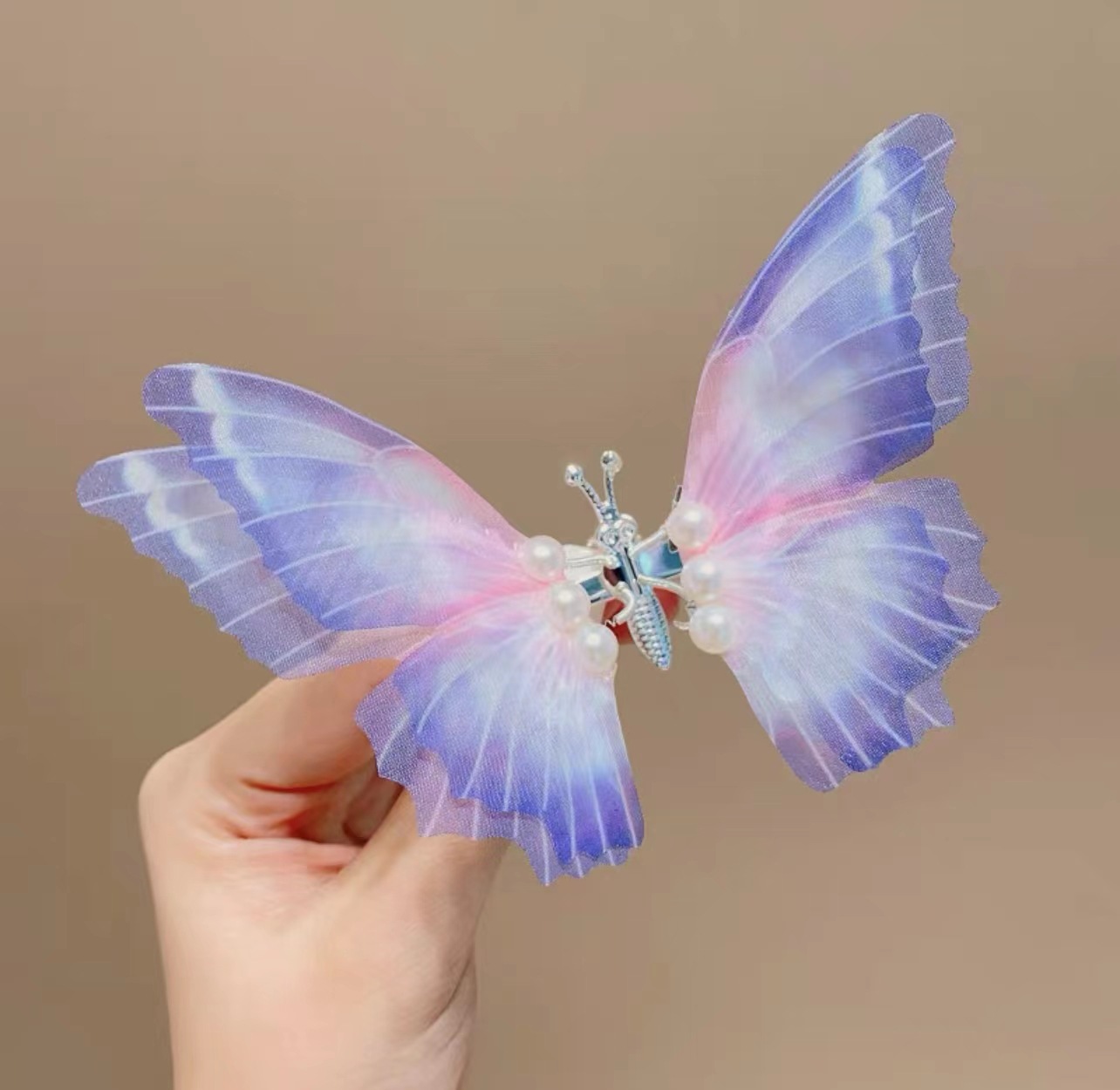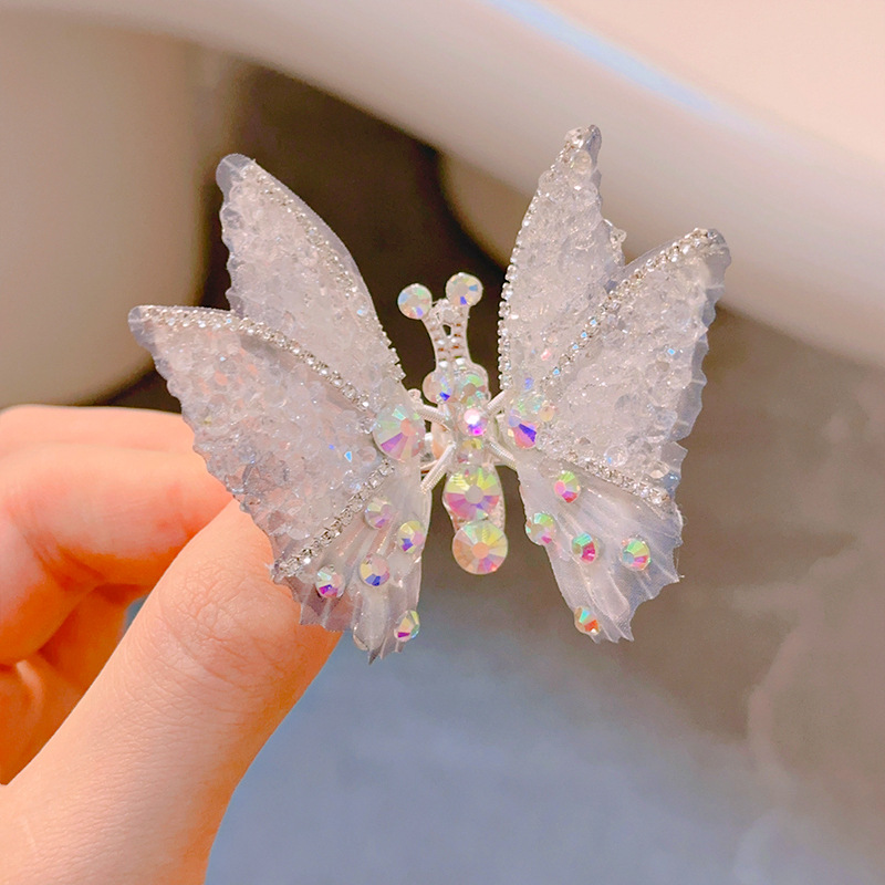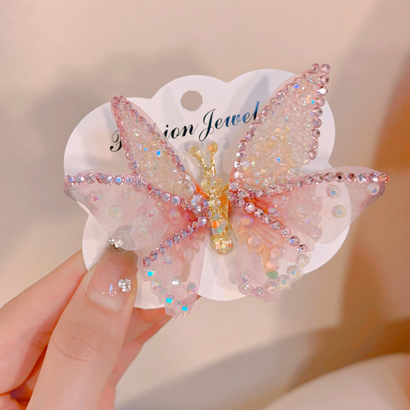 • 다이아몬드 나비 머리핀이 달린 딥 파우더