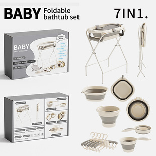 跨境感温折叠浴盆套装宝宝洗澡盆婴儿浴盆彩盒Baby bathtub 7 set