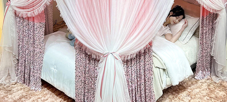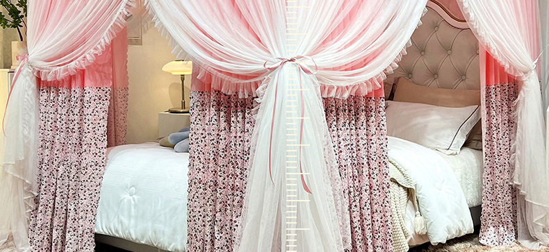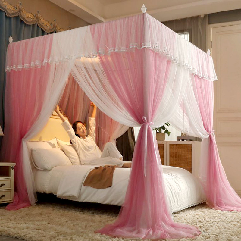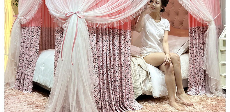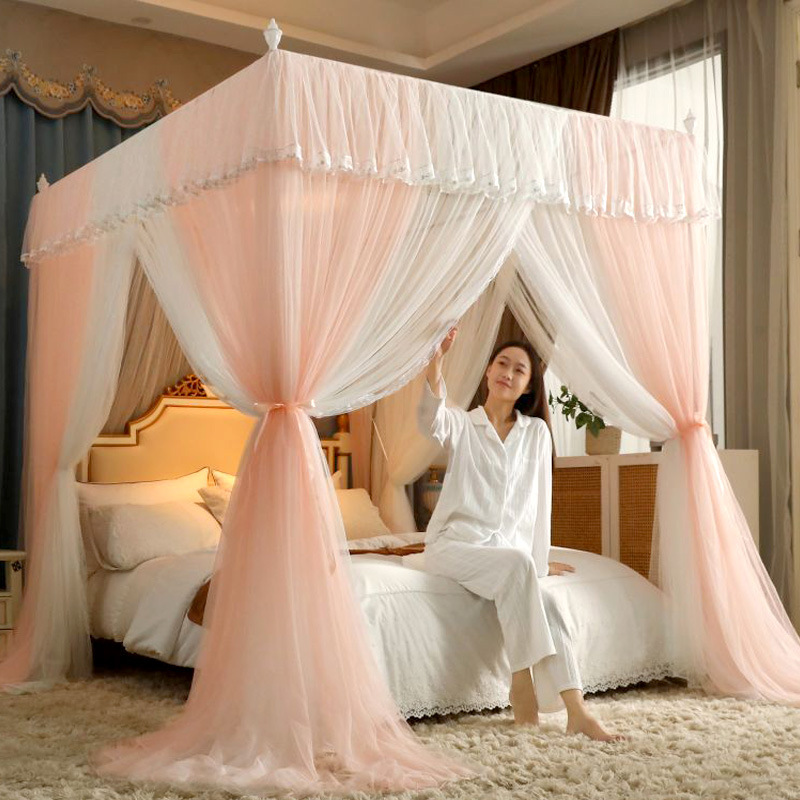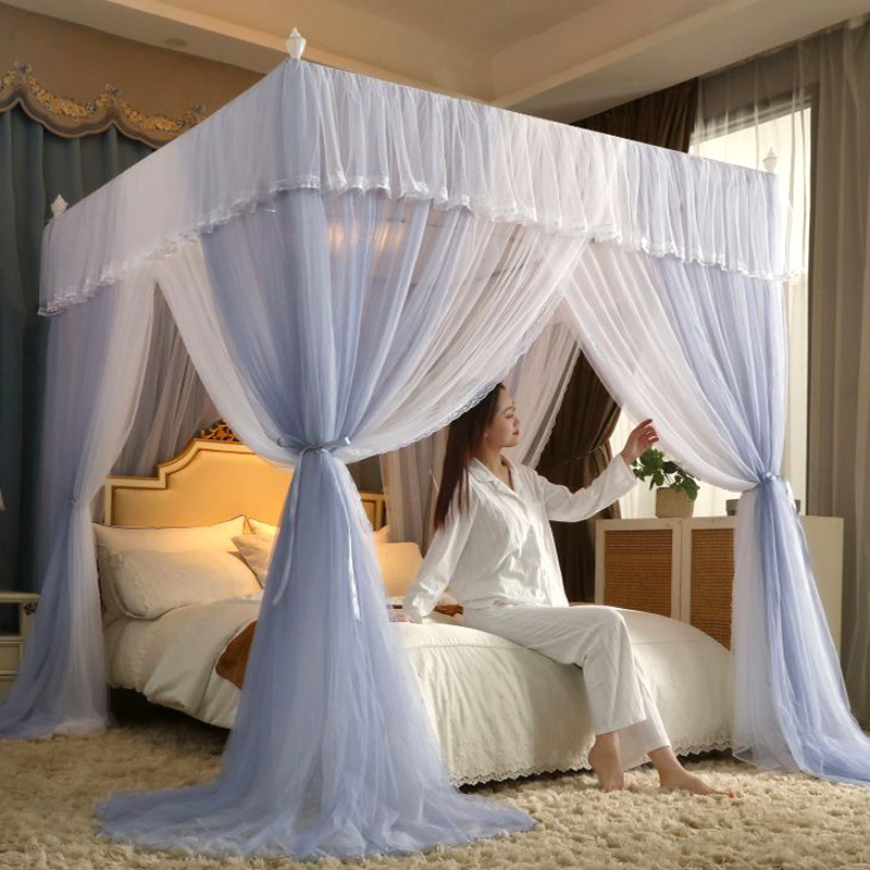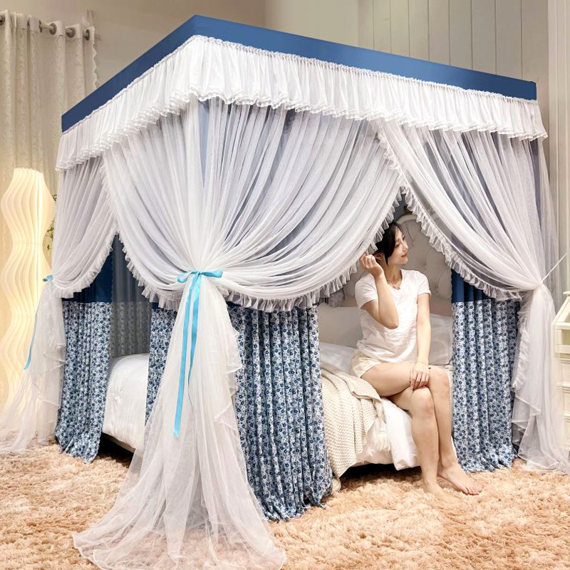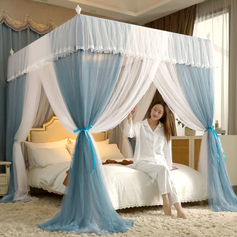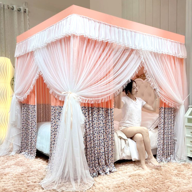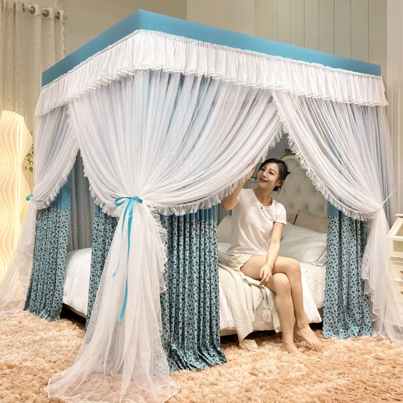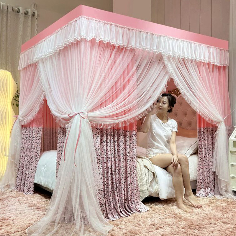 새로운 업그레이드 된 2 층 궁전 바닥 스탠딩 모기장 음영 침대 맨틀 대담한 모기 커버 암호화 그물 원사 먼지 천 침대 커튼