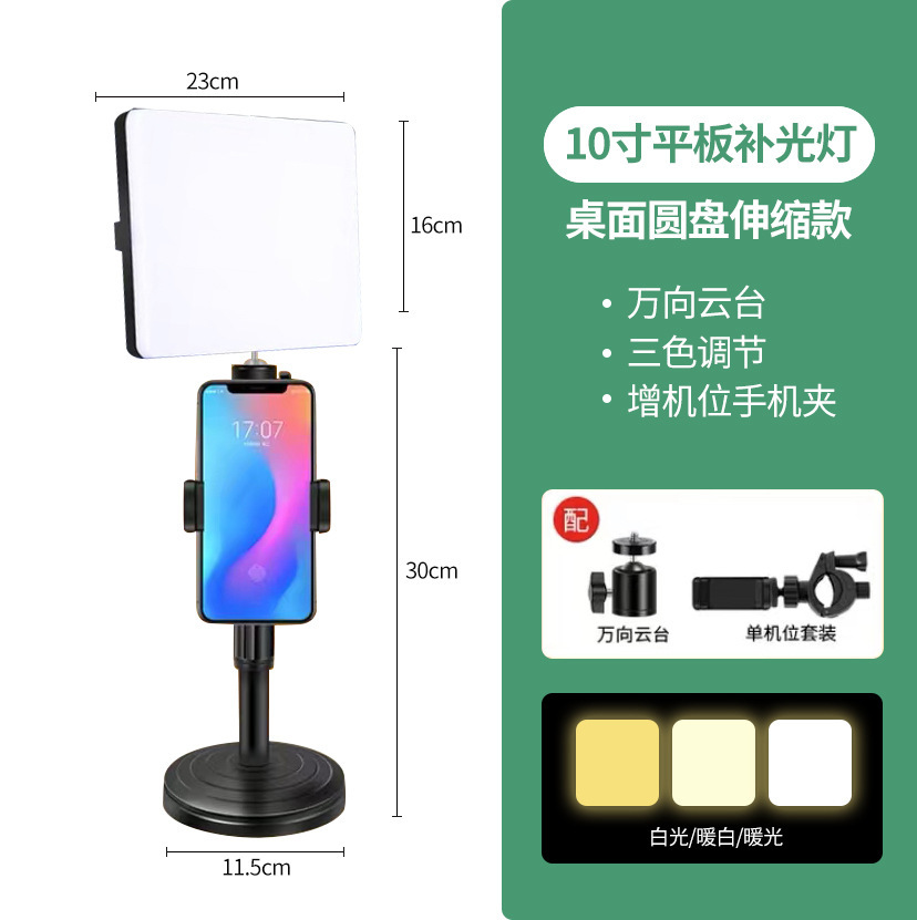 • 11inch 플랫 패널 램프 [새 스타일] + 금속 헤드 + O자형 추가 카메라 클램프 + 데스크탑 디스크 리프팅 브래킷