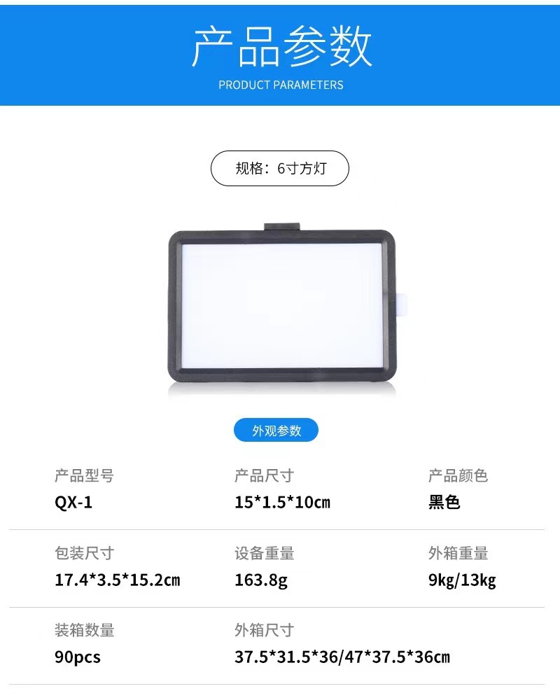 • 6 인치 평면 패널 램프 (짐벌 제외)