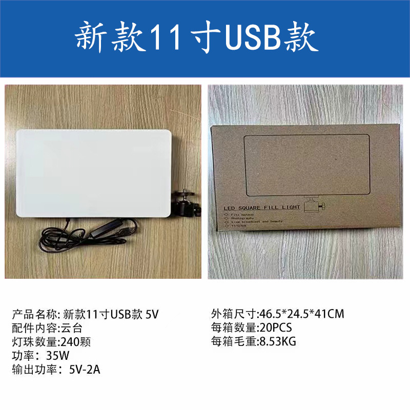 6인치 8inch 11inch 평면 필 라이트 사진 셀카 컬러 카드 조정 배경 조명 LED 라이브 방송 사각형 필 라이트