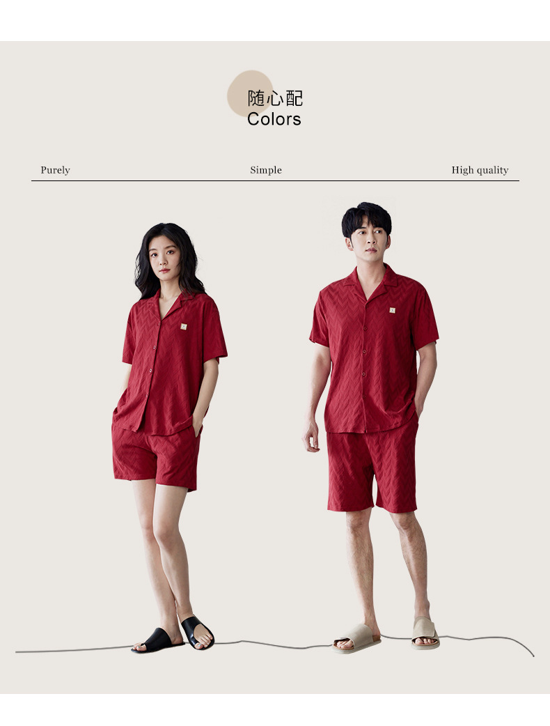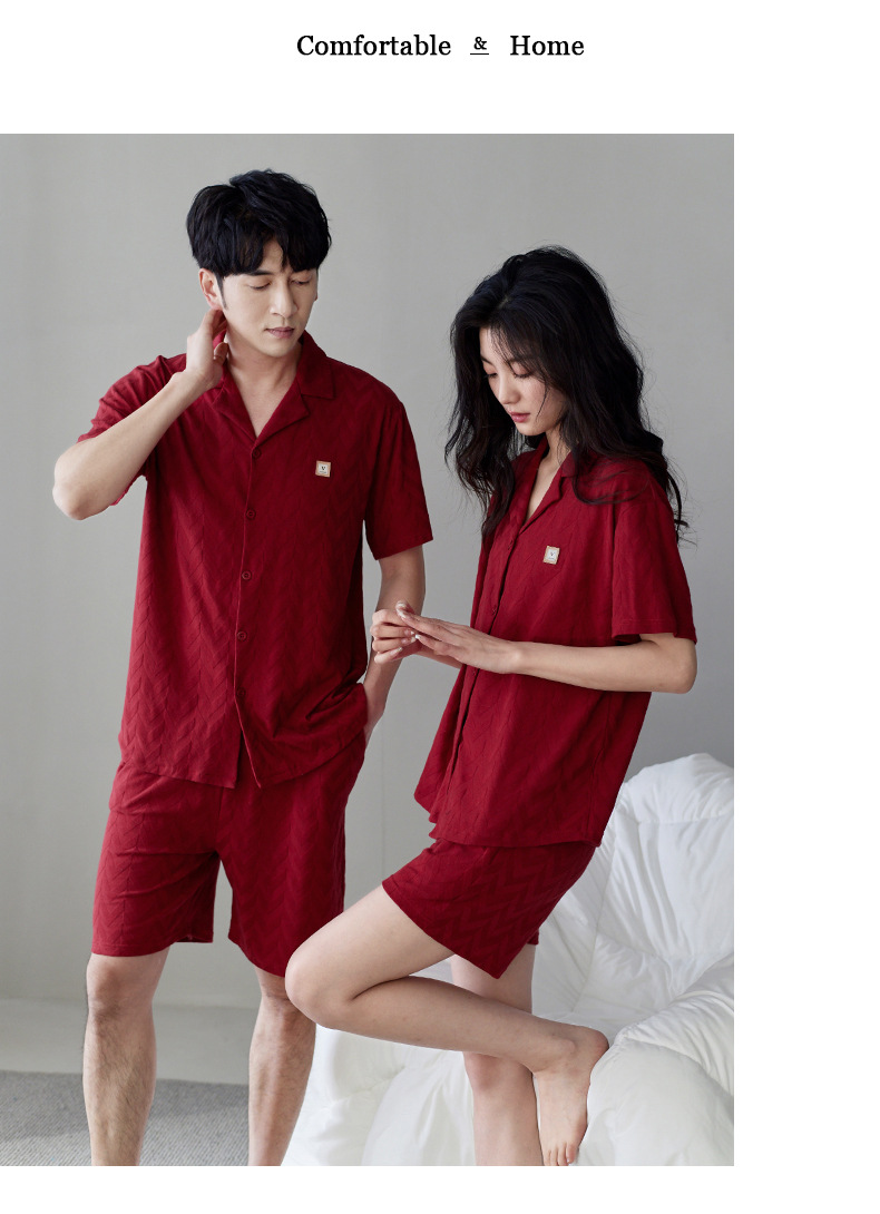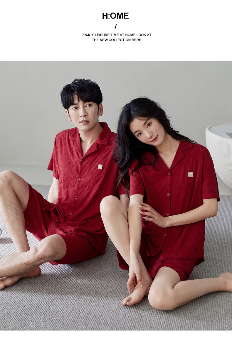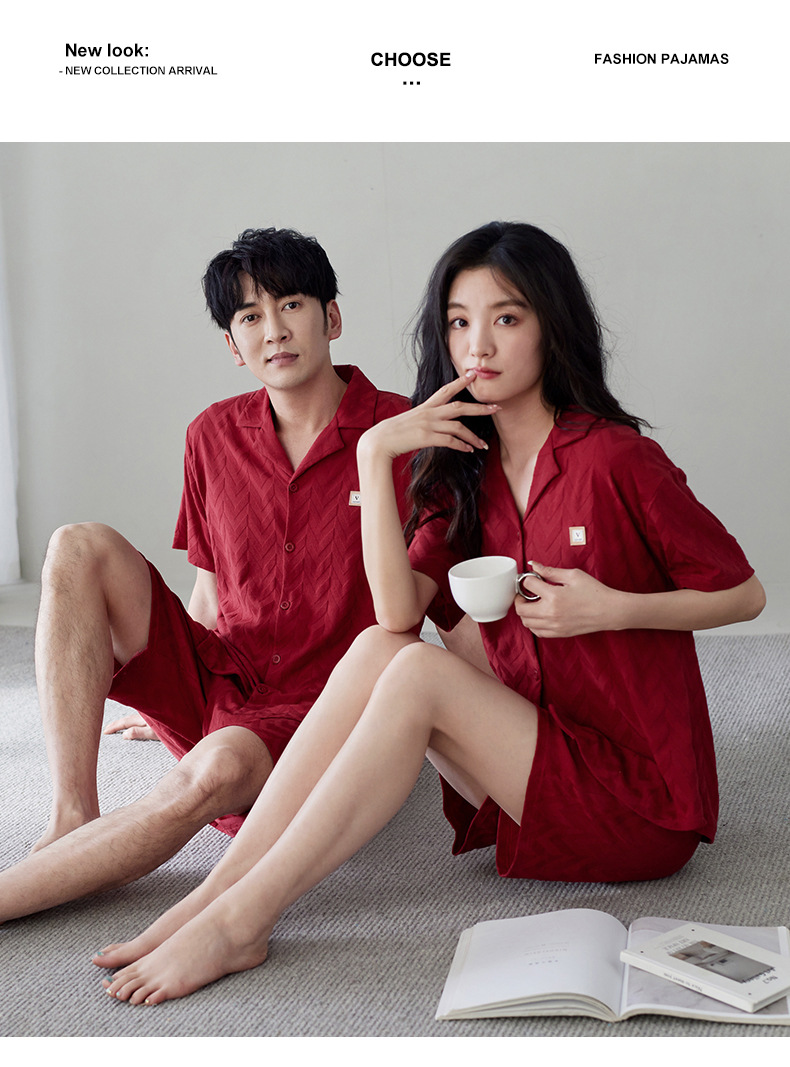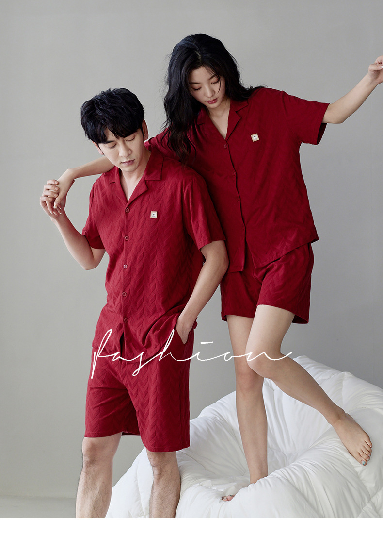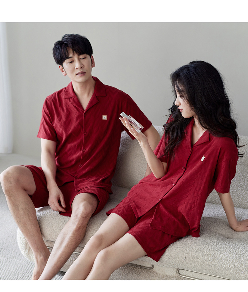 라이크라 면 커플 잠옷 여자의 여름 순면 반팔 세트 결혼식 신혼 남자의 가족 년 대추 빨간 가정 옷스토어 가기