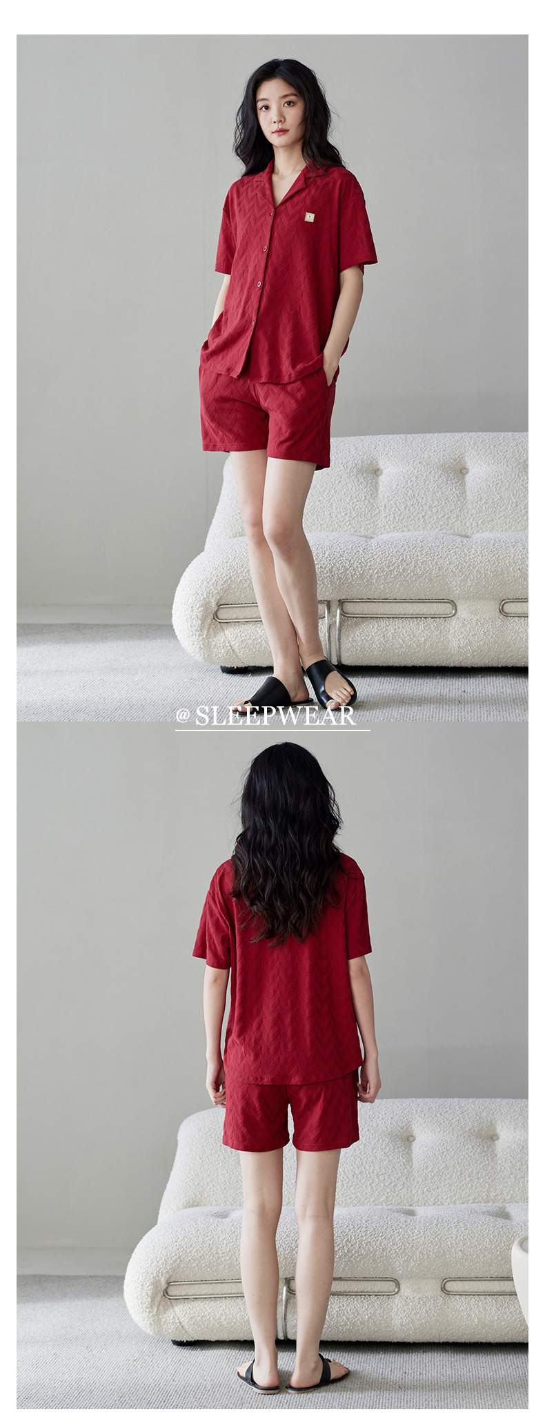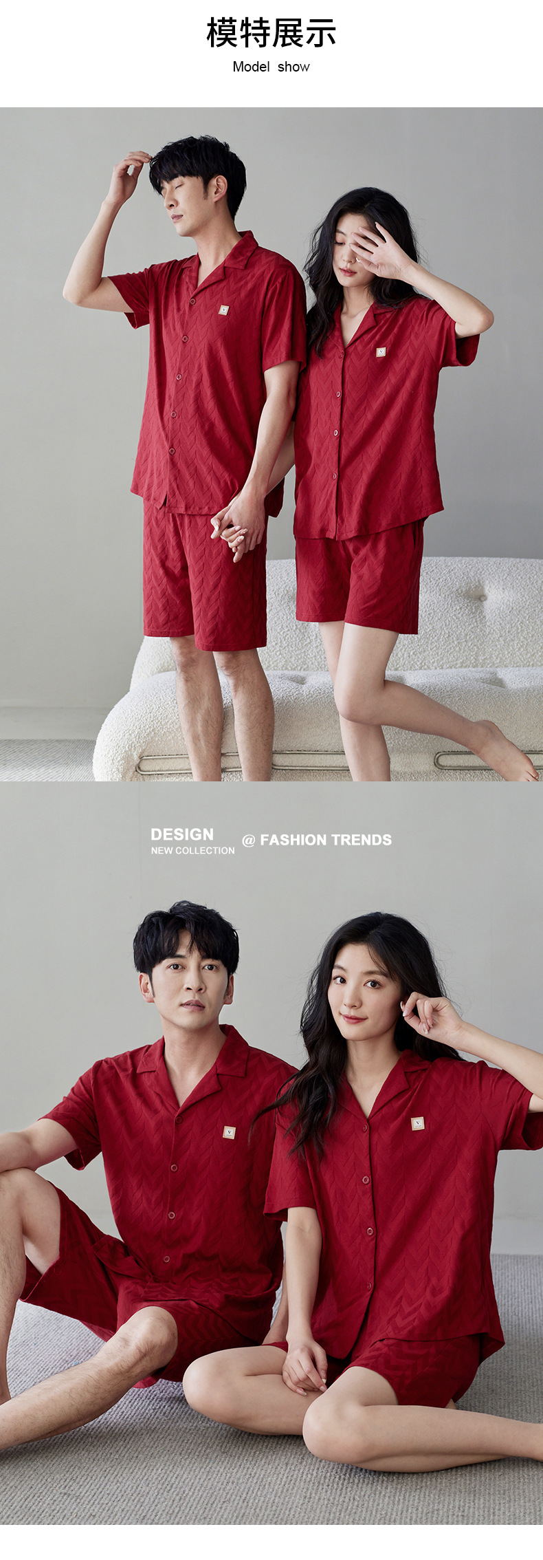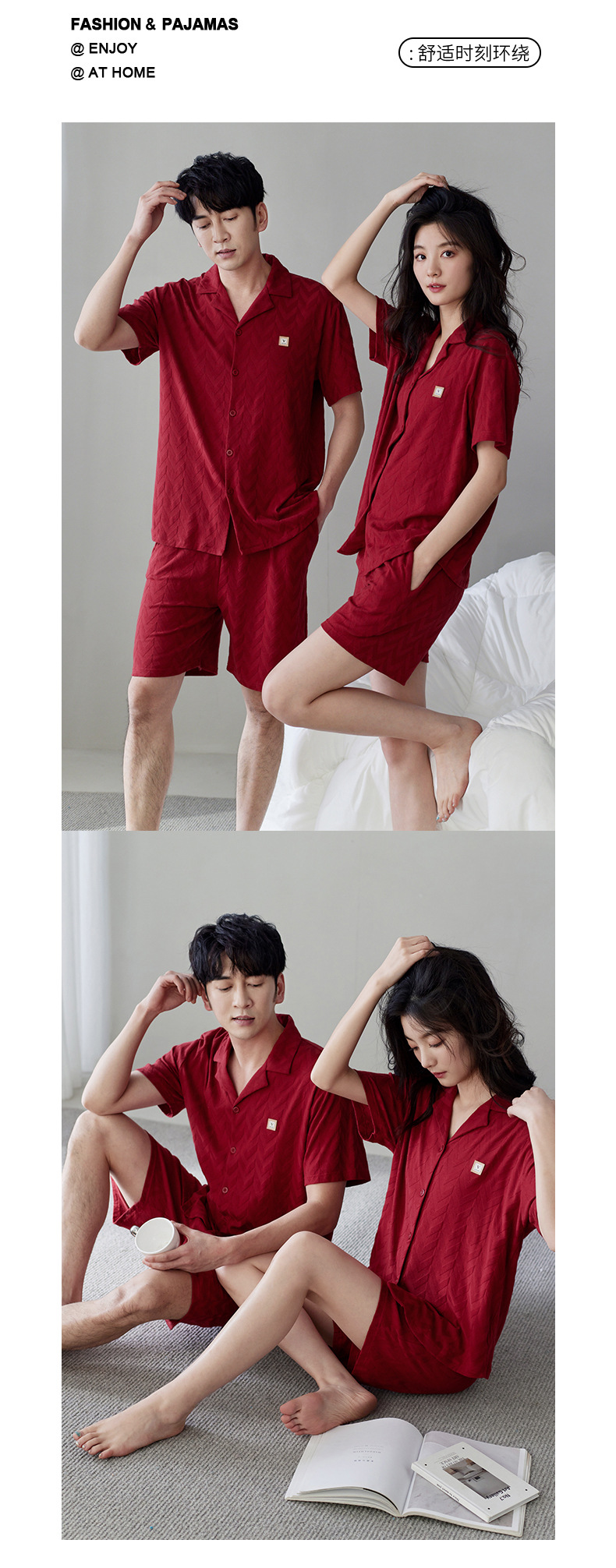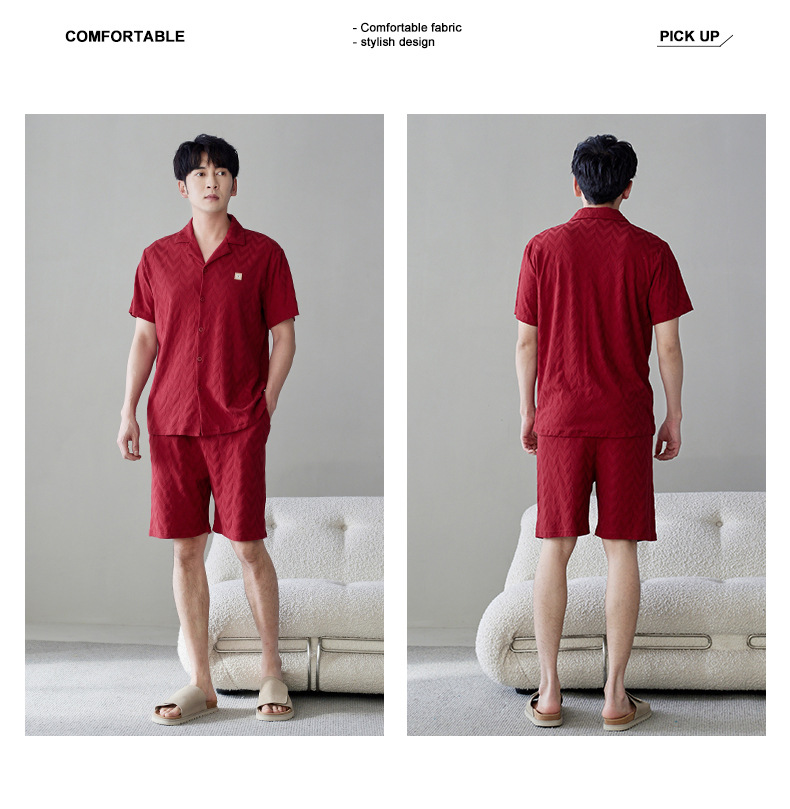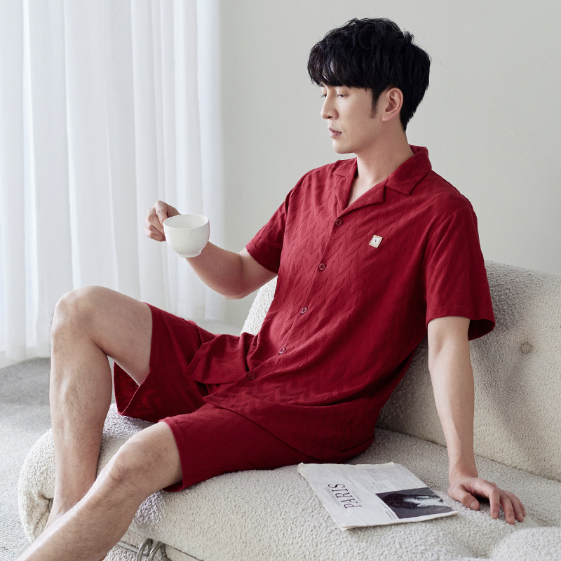 라이크라 면 커플 잠옷 여자의 여름 순면 반팔 세트 결혼식 신혼 남자의 가족 년 대추 빨간 가정 옷스토어 가기