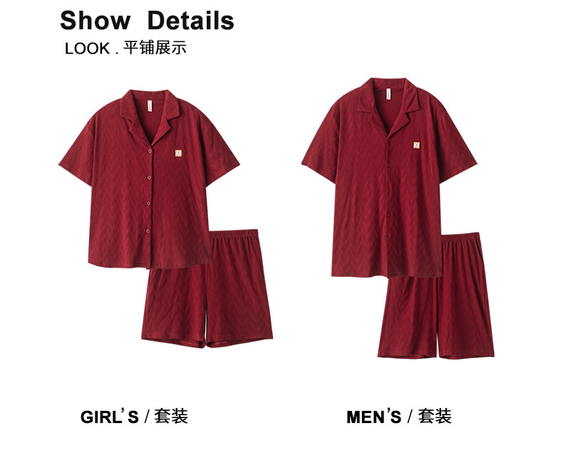 라이크라 면 커플 잠옷 여자의 여름 순면 반팔 세트 결혼식 신혼 남자의 가족 년 대추 빨간 가정 옷
