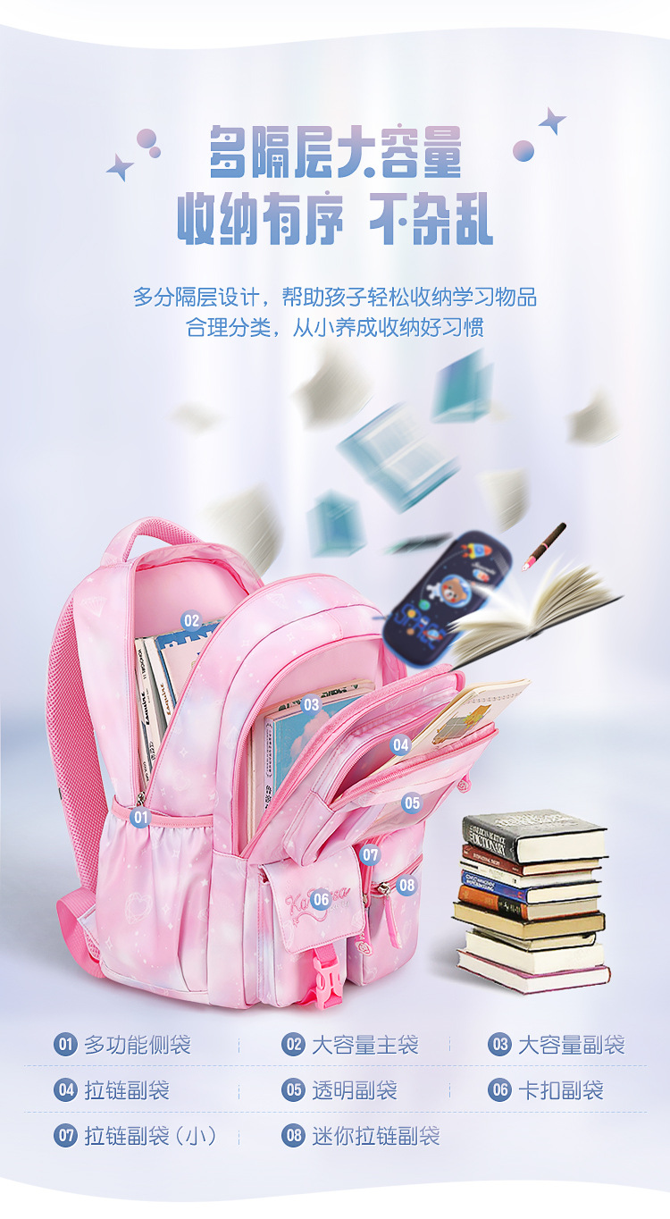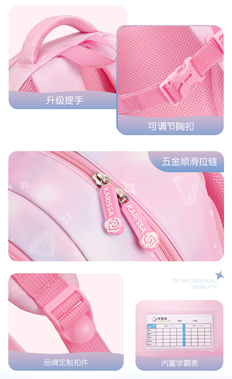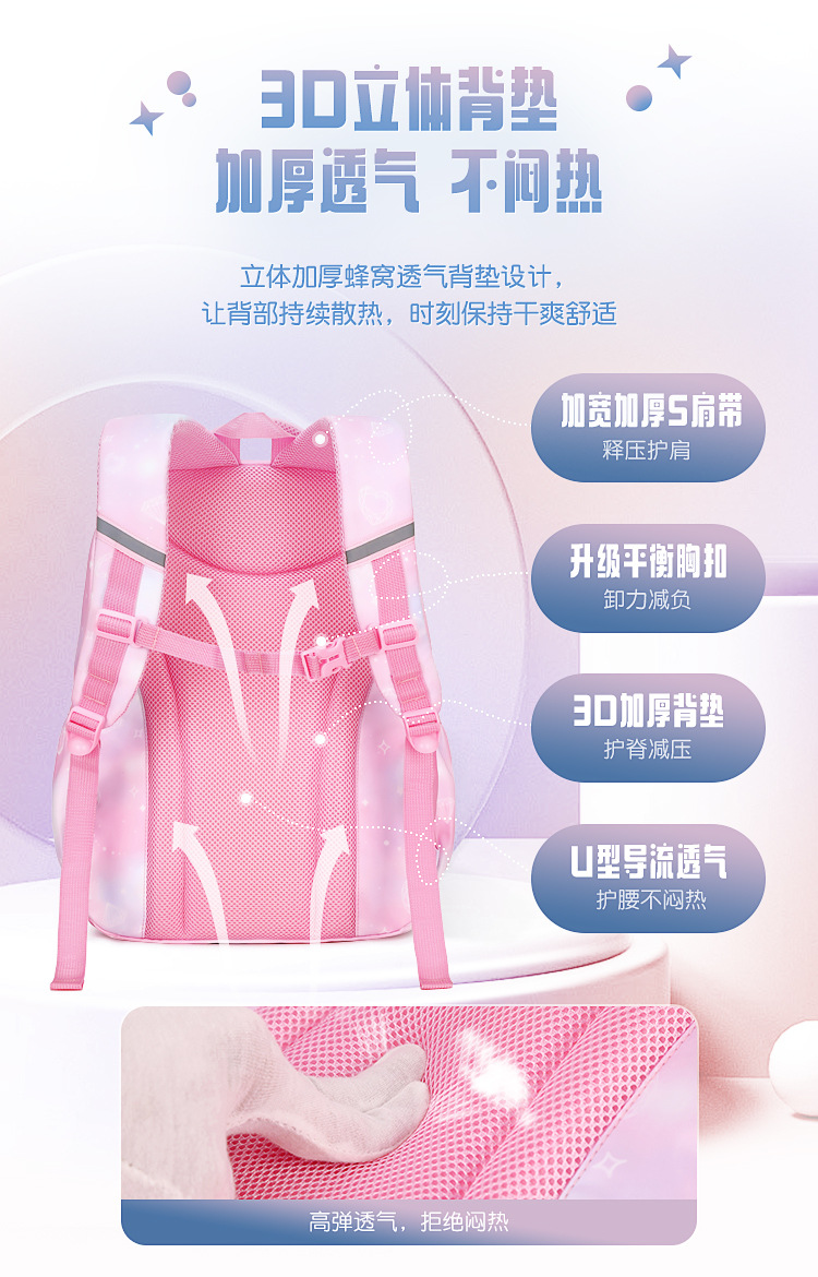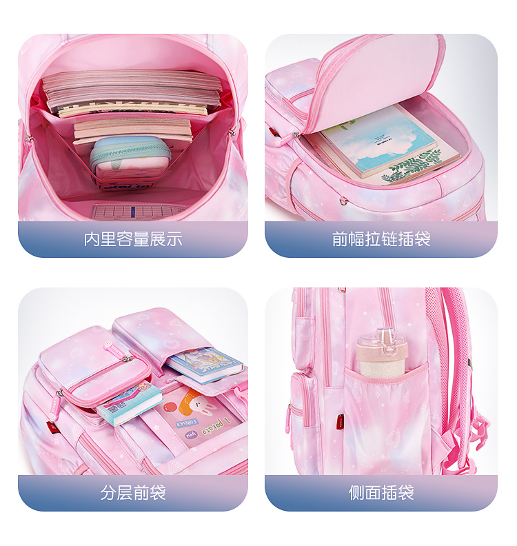 초등학생을위한 새로운 핑크 공주 스쿨 백 어린이 배낭 여중생 경량 대용량 배낭