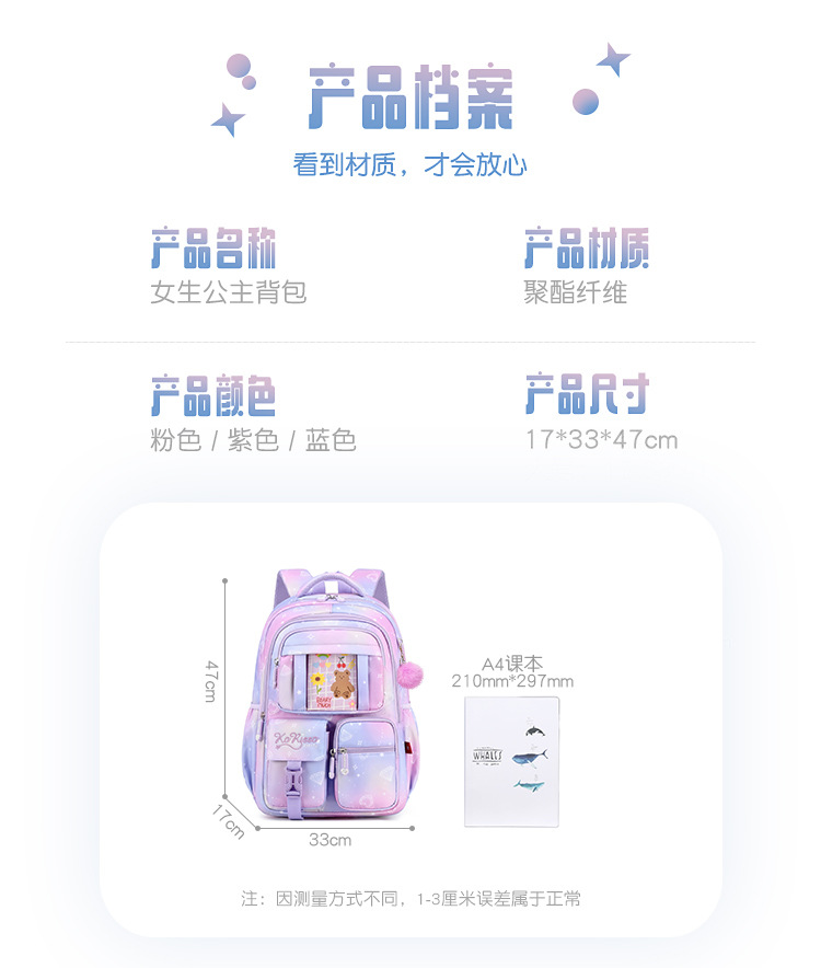 초등학생을위한 새로운 핑크 공주 스쿨 백 어린이 배낭 여중생 경량 대용량 배낭스토어 가기