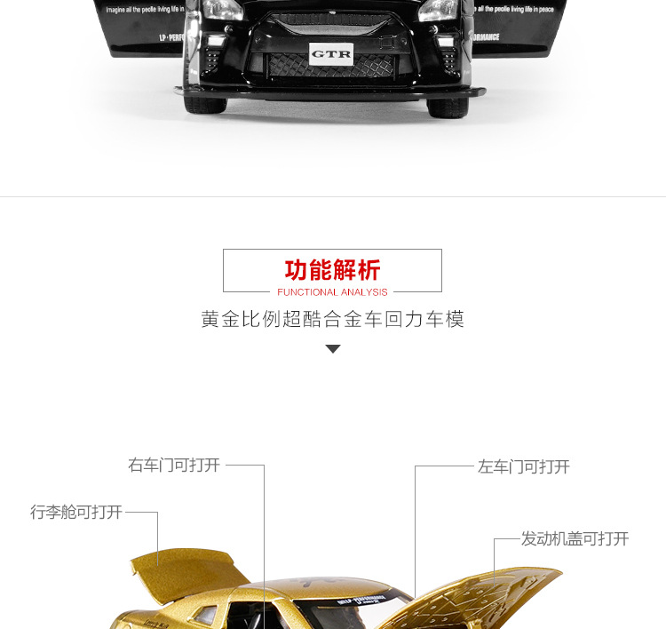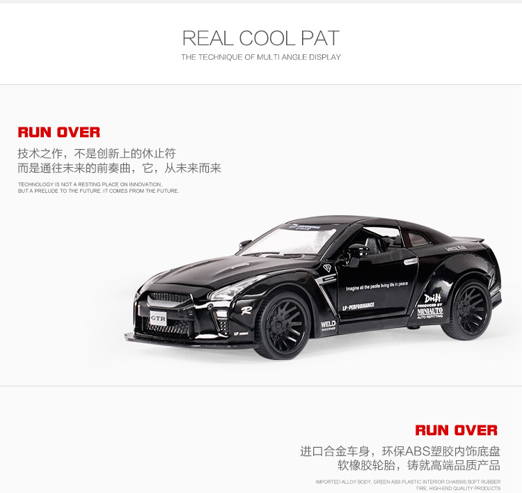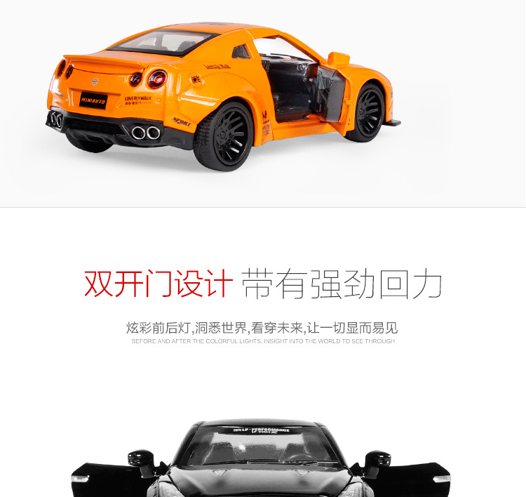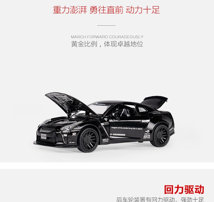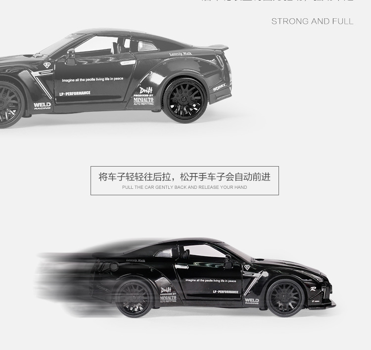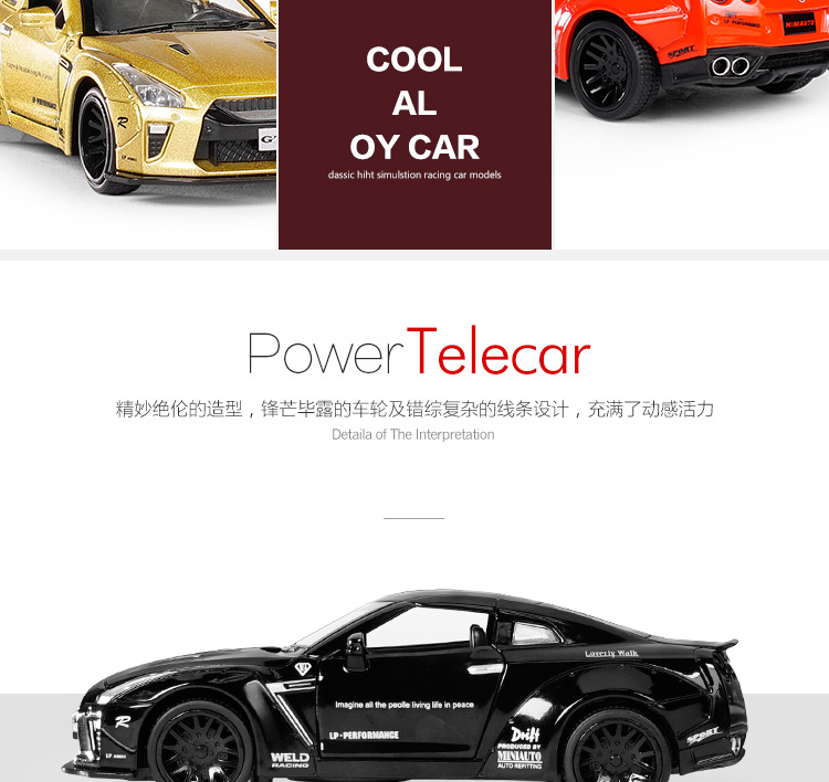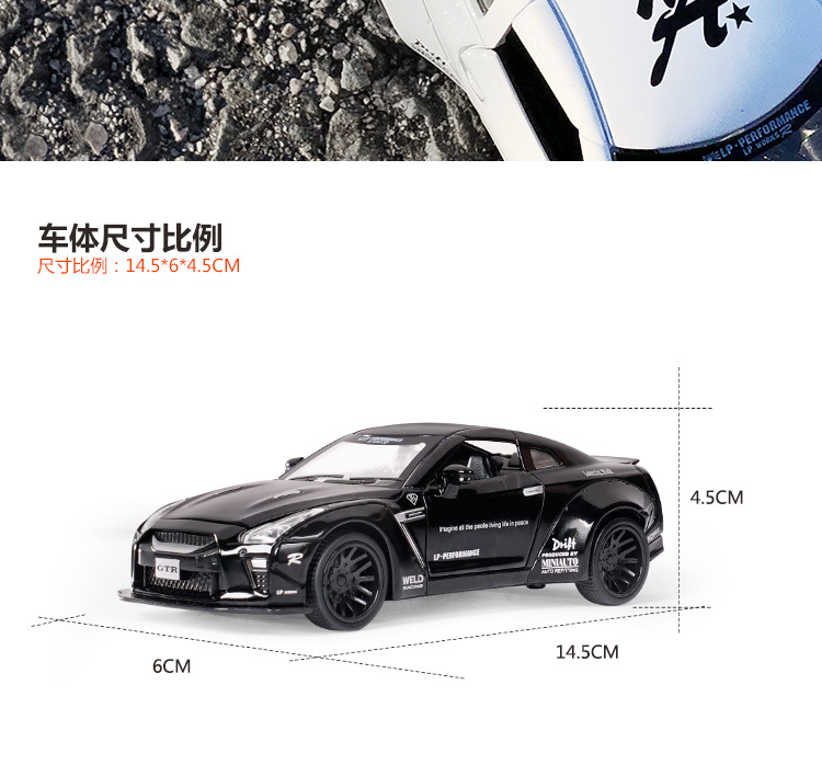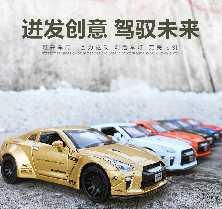1:32 Jianyuan GtR 합금 자동차 모델 시뮬레이션 레이싱 스포츠카 어린이 풀백 장난감 자동차 컬렉션 장식품