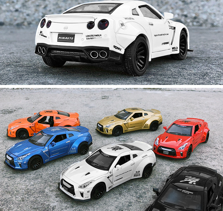 1:32 Jianyuan GtR 합금 자동차 모델 시뮬레이션 레이싱 스포츠카 어린이 풀백 장난감 자동차 컬렉션 장식품스토어 가기